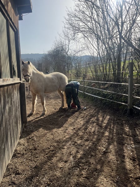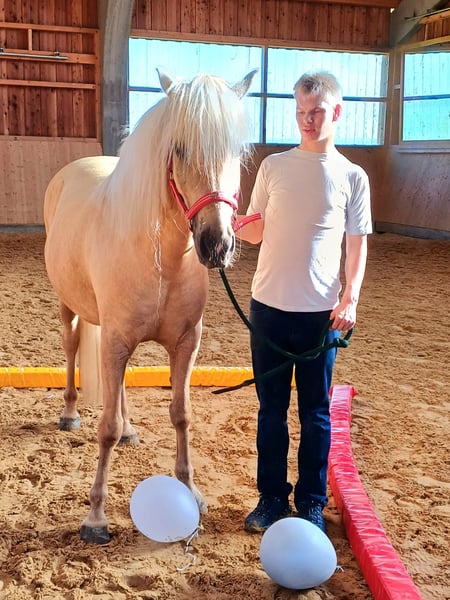 Zum Verkauf steht ein 7-jähriger Agidienberger Wallach mit Stammbaum (Kreuzung aus Isländer und Paso Peruano) mit einem Stockmaß von ca. 1,48 m. Er überzeugt durch seine außergewöhnliche Nervenstärke, Menschenbezogenheit und Verlässlichkeit. Er ist gesund, robust, barhuf und offenstalltauglich – auch in gemischten Herden. Regelmäßige Pflege sowie tierärztliche Betreuung sind selbstverständlich erfolgt. Kein Ekzem. ⸻ 🌿 Erfahrung im therapeutischen Bereich Er war bereits im Einsatz mit Kindern – auch mit Handicap – und zeigte sich dabei äußerst ruhig, geduldig und souverän. Er lässt sich von Kindern sicher führen, bleibt auch in ungewohnten Situationen gelassen und vermittelt Vertrauen durch seine klare, ausgeglichene Art. Sein ruhiger Charakter ist keine Momentaufnahme, sondern im Alltag gefestigt. ⸻ 🐎 Ausbildung & Reitbarkeit Filou ist solide angeritten und vermittelt im Gelände Sicherheit – auch alleine. Er verfügt über eine ehrliche, altersgerechte Grundausbildung und steht auf einer guten Basis. Dabei ist er stets motiviert und lernwillig und arbeitet gerne mit seinem Menschen zusammen. In den richtigen Händen kann er sich weiterhin ruhig und positiv entwickeln und sein Potenzial als entspannter Freizeitpartner voll ausschöpfen. ⸻ Er eignet sich ideal für: • Familien mit Kindern • Wiedereinsteiger • Freizeitreiter • Therapieeinrichtungen • Menschen, die ein verlässliches, ehrliches Pferd suchen ⸻ 🧠 Charakter • klar im Kopf • absolut menschenbezogen • geduldig und nervenstark • brav im Umgang • eher rangniedrig und konfliktmeidend ⸻ 📍 Verkaufsgrund Er wird abgegeben, da die aktuelle Herdenkonstellation für ihn langfristig nicht optimal ist. Mein anderer Wallach unterdrückt ihn leider stark. In einer passenden Gruppe oder bei individueller Haltung kann er sein ruhiges, freundliches Wesen voll entfalten. Filou wird ausschließlich in beste und verantwortungsvolle Hände abgegeben. Es handelt sich ausdrücklich nicht um einen Notverkauf. Wir nehmen uns die Zeit, den passenden Menschen für ihn zu finden. Gewünscht ist ein entspanntes Freizeit-Zuhause ohne sportlichen Leistungsdruck, in dem er einfach Pferd sein darf und als treuer Partner geschätzt wird. Filou ist kein Pferd für sportlichen Ehrgeiz oder Leistungsdruck. Er ist ein feines, ehrliches Wesen, das in einem schönen, wertschätzenden Umfeld aufblüht. Unter Druck zieht er sich eher zurück – in vertrauensvoller Zusammenarbeit zeigt er hingegen seine ganze Stärke und Verlässlichkeit.