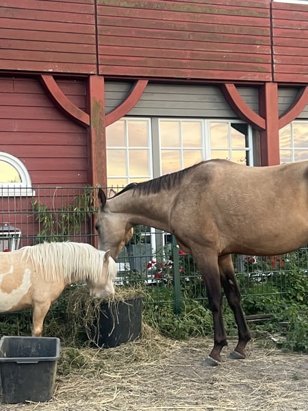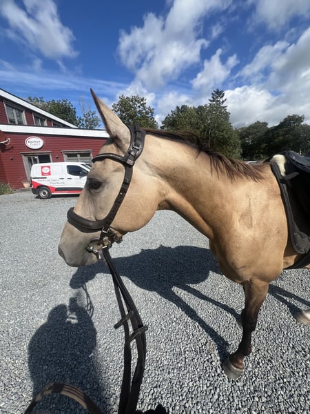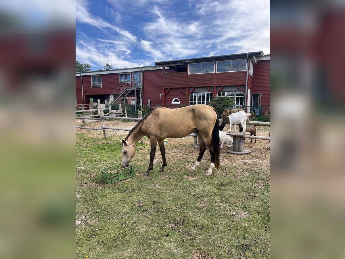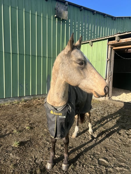 Djantemir ist ein 6-jähriger Achal-Tekkiner mit einem Stockmaß von 1,56 m. Er wurde 2019 in Österreich gezogen. Er ist ein Pferd zum Selbstausbilden – ideal für erfahrene Reiter. Ich selbst habe ihn vor etwa fünf Monaten gekauft, habe mich beim Kauf jedoch etwas überschätzt. Djantemir ist im Umgang noch recht unsicher. Er lässt alles mit sich machen, braucht dabei aber eine ruhige, erfahrene und sichere Hand an seiner Seite. Geritten wurde er bisher nur im Schritt, da er sich noch am Anfang seiner Ausbildung befindet. Satteln und Trensen klappt problemlos. Stillstehen und Geduld sind für ihn noch eine Herausforderung. Er macht alles brav mit, zeigt jedoch nach etwa zehn Minuten Stehen etwas Unruhe, da er einfach noch ungeduldig ist. Hufe gibt er, ist dabei aber noch etwas unausbalanciert, was ihn manchmal verunsichert. Mit weiterer Übung wird auch das bald kein Problem mehr sein. Er kennt Hunde, Kinder, Autos, Traktoren und Lärm und zeigt sich dabei stets von seiner besten Seite. Auch Platz und Halle sind ihm bekannt, wo er sich ebenfalls artig zeigt. Bei mir war er bislang nie krank oder lahm. Die Zähne wurden im September 2025 frisch gemacht, Tetanus- und Influenza-Impfungen wurden im selben Monat aufgefrischt. Außerdem wird er regelmäßig dem Hufschmied vorgestellt. Aktuell wird er 24/7 in Weidehaltung gehalten, nur zum Arbeiten und Füttern kommt er in den Stall. Boxenhaltung kennt er zwar, wünschenswert wäre jedoch Offenstallhaltung, da er in der Box unruhig werden kann. Ursprünglich wurde er für Distanzritte gezogen. Da er relativ unerschrocken ist, wird er mit Sicherheit ein toller Ausrittpartner. Mit dem richtigen Reiter hat er aber auch das Potenzial für deutlich mehr. Es handelt sich hierbei nicht um einen Notverkauf – ich gebe ihn nur in beste und erfahrene Hände ab. Eine Besichtigung ist nach Terminvereinbarung selbstverständlich möglich. Nachrichten gerne per WhatsApp an +49 173 2716155