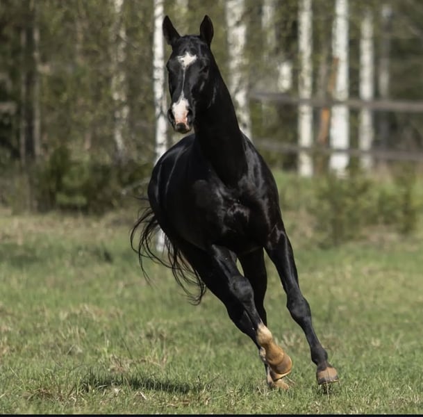 Stupendo stallone Akhal teke, dal sangue nobile, unico al mondo. Vanta nel pedigree antenati illustri. Addestrato sia nel salto ostacoli che nel dressage, ha partecipato a numerosi concorsi sia di salto a ostacoli che di dressage con ottimi risultati. Attualmente impegnato in categoria di salto 120 cm, a casa salta tranquillamente 135-140 cm, e presto salirá di categoria. Adatto a cavalieri esperti, non a principianti. Padre di numerosi splendidi puledri, é adatto anche per l' allevamento, ai suoi figli trasmette le sue ottime doti. Se realmente interessati non esitate a contattare per ulteriori informazioni e video. Trasporto possibile in tutta Europa e all’ estero.