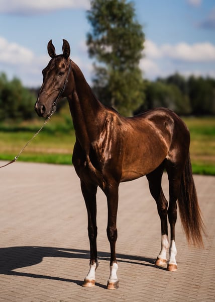 Elegant and athletic stallion with excellent presence and conformation. Ridden daily and performing confidently at amateur-level jumping at home. He has already sired one beautiful foal, showing great potential as both a riding and breeding stallion. Family Line: Sovhoz 2 Sire: Taymir Dam: Anor (Alyhira) by Helvar 21 Character: Strong yet manageable personality Temperament: Calm and respectful with mares Behaviour: Displays dominant stallion character around other males Breeding: Easy to handle and experienced Has also been ridden by a teenager at home – suitable for a confident rider with experience handling stallions. 📍 A truly eye-catching horse with great potential for sport and breeding. 📞 For more information, photos, and videos, please contact via private message.
