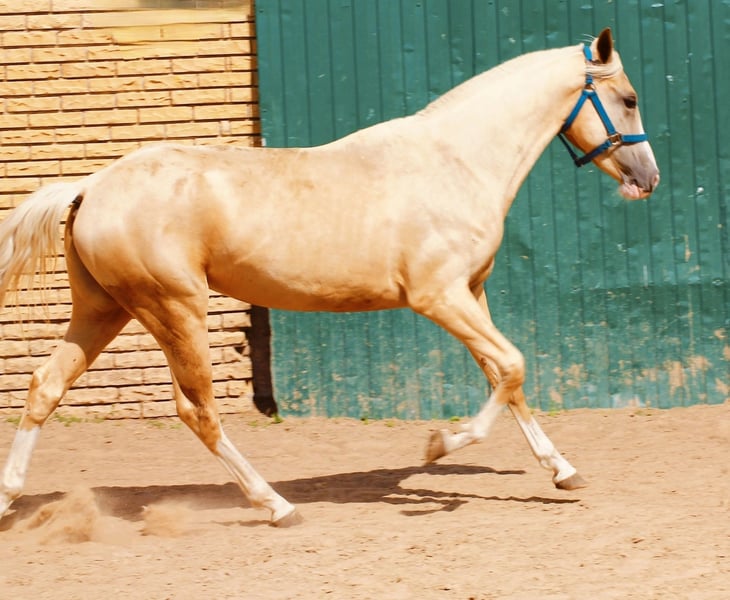 Eine wunderschöne, große Stute in beeindruckendem Palomino-Farbton, mit auffälligen Knie-Socken und schönen Abzeichen. Sie besitzt eine ausgezeichnete Konformation und ein angenehmes Wesen, ist ausgeglichen, ruhig und gut ausgebildet. Sie verbringt viel Zeit mit der Herde und erhält alle notwendigen Bewegungsprogramme. Sie verfügt über Zuchtpapiere und ist für jede Disziplin oder Zucht geeignet. Wir können den Transport sowie die Dokumentation organisieren.