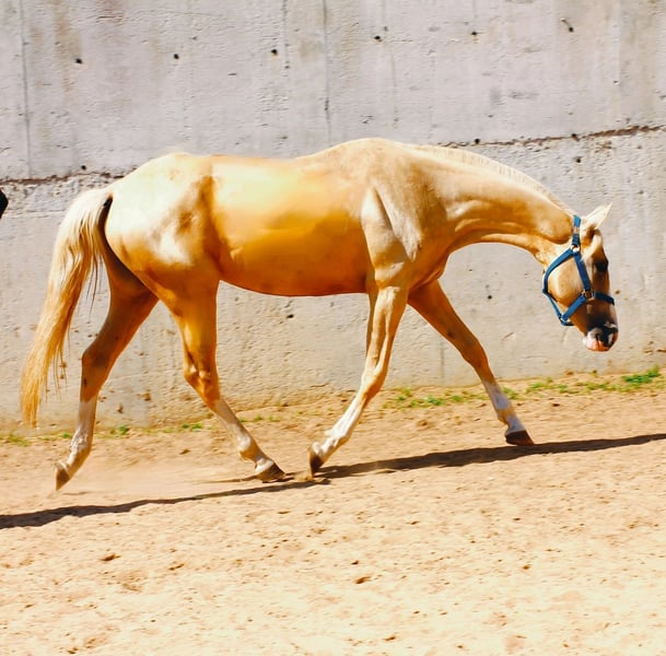 Una hermosa y grande yegua de magnífico color palomino, con medias altas en todas las patas y marcas distintivas hermosas. Tiene una conformación excelente y un carácter equilibrado, es tranquila, calmada y bien entrenada. Pasa mucho tiempo con la manada y recibe todo el ejercicio necesario. Cuenta con papeles de cría y es apta para cualquier disciplina deportiva o reproducción. Podemos gestionar el transporte y la documentación.