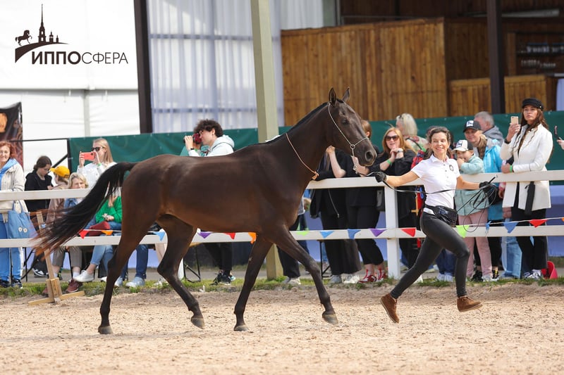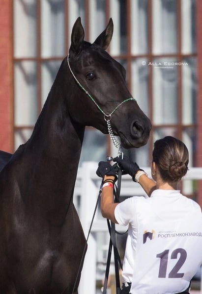 Purebred Akhal-Teke mare for sale, born in 2021 (October), winner of the Hipposphere and Russian Cup (VDNKh) exhibitions, large, height at 3 years 160, continues to grow. Carrier of the creme gene (isabella) (tested by DNA). A brave horse, with a good psyche, all household manipulations, walks in a company, not conflictual, people-oriented, familiar with the rider (walk-trot), inseminated by a purebred Akhal-Teke stallion in 2025 (Last pic)