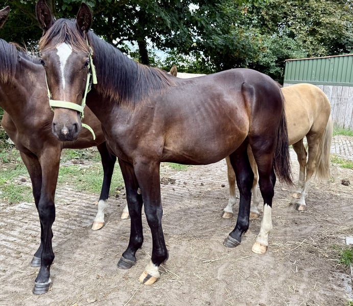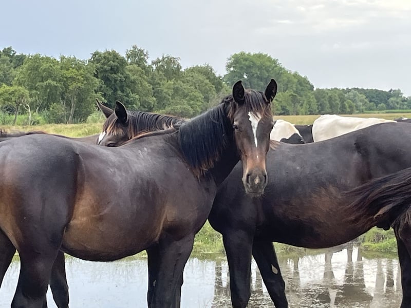 For sale is a promising Oldenburg stallion foal in a classic black coat. **Pedigree:** Sire: Premium stallion DEDO – descendant of Der Alte Oldenburger x Lord II Dam: Belladonna – a typy star mare by Gregor This young stallion combines traditional Oldenburg bloodlines with modern type and a clear performance-oriented attitude. **Character & Presence:** A real eye-catcher with an expressive head, harmonious build, and commanding presence. Despite his young age, he is very well-behaved, people-oriented, and easy to handle in everyday situations. **Current Location:** Stallion pasture in the marshland – a species-appropriate upbringing with plenty of movement, healthy social behavior, and a stable herd structure. **⭐ Special Features:** ✅ Breed-typical with a strong foundation ✅ Good basic gaits ✅ Clear potential for breeding, leisure riding, or training under saddle ✅ Very balanced temperament ⏳ A talented young stallion with great future prospects and excellent prerequisites for breeding, sport, or ambitious leisure riding. Please feel free to contact us for more information or if you are interested! (Viewing possible by arrangement)