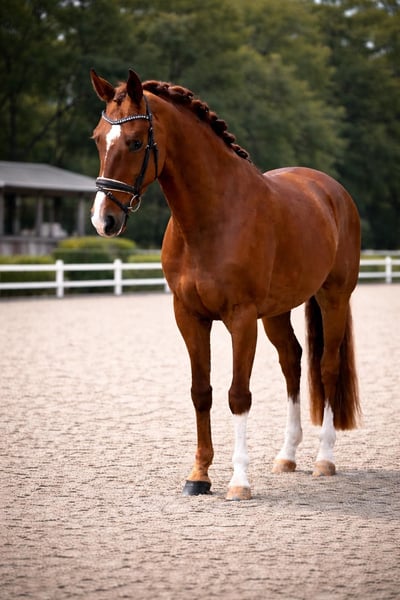 Dieser 5j Wallach von Bon Courage x Delphi - 1,74 m ist vielseitig einsetzbar. Er wird in der Dressurarbeit auf DPL Niveau trainiert ( 2025 Reitpferde platziert). Er liebt Freispringen und geht eine kleinen Parcours. Ausritte mit einem Bad im See kennt er. Als Hengst war er gekört. Es ist kopfklar, angenehm zu sitzen und einfach in der Anlehnung. Schmiede und Verladefromm Standort ist 23623 Ahrensbök. Er liegt bei 30t vb Aktueller TÜV mit Rücken,Hals Genick liegt vor Videos und Fotos auf Anfrage: 01779597956