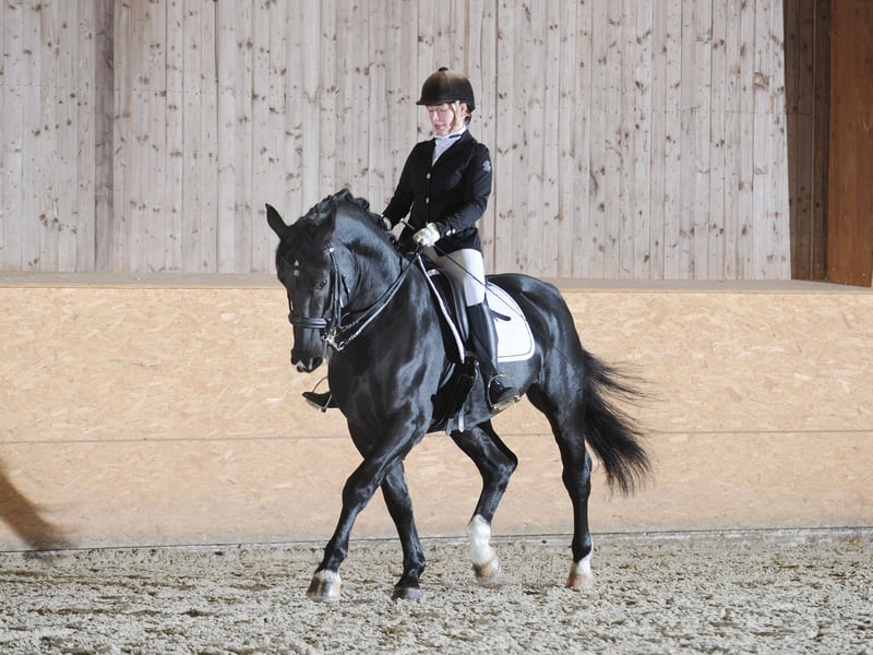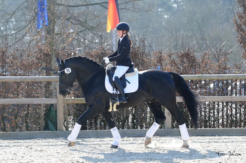 Laurin Das klassische deutsche Pferd, gesund, umgänglich, erfolgreich wie man diese noch vor 30 Jahren gezüchtet hat. gekört: Zuchtverband Alt-Oldenburger / Ostfriesen Zuchtverband Weser-Ems, Barockreitpferd Zuchtverband Anglo-European Studbook HLP Offener Sport 8,2 - Fahren und Dressur unter dem Sattel Zuchterfolge: 2 gekörte Söhne (AES). Sporterfolge: Siege und Platzierungen im Fahrsport, Einspänner bis M. Siege und Platzierungen unter dem Sattel in der Dressur bis L**. Laurin und seine Nachkommen sind die idealen Breitensportler für jede Disziplin. Unkompliziert, umgänglich, gesund. ECVM-frei, PSSM-1-frei, WFFS-frei, FIT-frei, OCD-frei In 13 Lebensjahren keine Lahmheiten, keine Koliken, keine Hautprobleme, keine Atemwegsprobleme, keine Zahnprobleme und keine sonstigen Stoffwechselprobleme wie Myopathien oder EMS. Dasselbe gilt für seine bisherigen Nachkommen. Ein edler und erfolgreicher Hingucker für jeden Amateur, der einfach nur Spaß haben will in der Freizeit und im Turniersport. Sein Rassetyp - einst das Oldenburger Warmblut vor dem 2. Weltkrieg - nennt man heute "Schweres Warmblut" mit den Zuchtbüchern der ALt-Oldenburger / Ostfriesen (nicht mit Friesen verwechseln), Sachsen-Thüringer, Alt-Württemberger, Rottalern. Dazu kommen die Rassen Schlesier, Groninger und Gelderländer und die Dansk Oldenborg, die allerdings alle ihren Ursprung in der Zucht der Ritterpferde in Mitteleuropa (insbesondere das heutige Sachsen-Anhalt, Thüringen, Niedersachsen und Friesland) haben. Die Zuchtgeschichte geht mehr als 1000 Jahre zurück. Einst die begehrtesten Rittern-Nahkampf-Rösser in Europa. Mit Einführung des Schießpulvers veredelt zu schnellen Kavalerie-Rössern. Zuletzt im modernen Sportpferd aufgegangen. So gehen berühmte Hengste wie Donnerhall über die Mutter auf gemeinsame Vorfahren zurück. Es gab keine härtere Selektion als den Krieg und die Eigenschaften wie Härte, Kraft Ausdauer und Verlässlichkeit waren nach dem 2. Weltkrieg die Basis des Erfolges der deutschen Sportpferdezucht. Seine Nachkommen zeigen, dass Laurin selbst Mängel der Stuten ausgleichen kann. In der Anpaarung mit Warmblutstuten entstehen Sportpferde, die der Zuchtausrichtung der 70iger bis in die 90iger Jahre entsprechen wie seine zwei im AES Verband gekörten Söhne aus einer Trakehner x Holsteiner-Mutter zeigen. Rassetypisch hat er einen enormen Schub aus der Hinterhand mit einer sehr hohen Tragkraft, der sich vor allem an der Kutsche zeigt. Sein Bewegungsablauf ist klassisch mit einer Betonung auf einer echten Schwebephase mit gestrecktem Vorderbein und Lastaufnahme auf der Hinterhand. Laurin ist erfolgreich mit Amateuren an der Kutsche (siegreich und platziert bis M) und unter dem Sattel (siegreich und hochplatziert bis L**). Damit ist der innerhalb der Rassegruppen der Schweren Warmblüter derzeit einer der sportlich erfolgreichsten Hengste und mittlerweile ein Lehrpferd für ambitionierte Breitensportler im Fahren, wie in der Dressur und sogar im Springen. So wie er selbst sind seine Nachkommen sehr umgänglich, menschenbezogen, von ruhigem Charakter und leichtrittig. Er vererbt überwiegend die Rappfarbe oder schwarzbraun mit einem starken Glanzeffekt. Trotz der soliden Statur wirkt er selbst elegant und kraftvoll, was er auf seine Nachkommen weitergibt. Diese Eigenschaften hinsichtlich Härte, Gesundheit und Verlässlichkeit sind in der modernen Zucht nahezu verloren. Laurin und seine ersten Nachkommen zeigen allerdings, dass sich Stabilität und Eleganz nicht ausschließen und gerade im Breitensport zu erfolgreichen und gesunden Gefährten führen, die einfach nur Freude bereiten und sich durchaus neben den modernen Zuchten behaupten können bei einfacher Bedienbarkeit. Laurin steht in der Saison 2026 über Natursprung auf dem Kryxenberghof (Nähe Heidelberg) zur Verfügung und über TG im Landgestüt Celle.