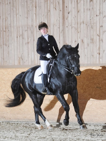 Laurin The breeding of the Oldenburg horse was established by Count Anton Günther of Oldenburg in the 17th century. The breeding goal was to produce a noble yet powerful horse. These horses were so highly sought after that Count Anton Günther managed to keep the small Oldenburg region out of the devastation of the Thirty Years' War by gifting his horses to other regional rulers. This type of the original Oldenburg was once the foundation for some of the finest modern sport horses, such as Donnerhall, Nimmerdor, and even Weihegold, which traces its dam line back to Weissena, descending from the original Oldenburgs Folkert and Goldengel. Contrary to some modern claims, these were not simple workhorses. They were warhorses for princes, kings, and military leaders, and thus highly valuable. These horses were a guarantee of maximum security and combat readiness—brave, fearless, stable, yet swift and agile. The best stallions could reach a value equivalent to up to 50 dairy cows. Johann Pinter von der Au describes in his 17th-century book "Pferd-Schatz" that, despite their robust build, Oldenburgers always executed high and wide jumps with safety, unlike any other German horse. Pinter von der Au refers here to the jumps of classical military horsemanship, such as the capriole, which was once used to unseat opponents from their horses. However, these genes—stability and health paired with powerful elegance—have been nearly completely lost in modern sport horse breeding. Laurin is one of the last representatives of this type. With his successes in combined driving and under saddle, Laurin has proven that these horses are still relevant today, even among modern sport horses. In fact, quite the opposite. Laurin has achieved victories in dressage up to Grand Prix level and has high placements in international competitions. He also earned a reserve placing in cone driving at an international event. Under saddle, he demonstrates his versatility and temperament as a mature stallion, competing successfully in dressage up to L** level with amateurs. He is also very skilled over jumps and is an absolute reliable partner, able to compensate for rider errors through excellent coordination, vision, sure-footedness, and load acceptance. All of these qualities—once essential for survival in battle—are equally vital for good and reliable modern sport horses but have unfortunately been lost over time. Crossbreeding Laurin with modern mares produces offspring with a solid foundation, good temperament, and health, suitable for leisure riding as well as intermediate to advanced sport disciplines. This over 1,000-year-old breeding history of these knightly horses, as depicted by Leonardo da Vinci and Albrecht Dürer, has roots in regions now known as Westphalia, Lower Saxony, and Thuringia. Laurin demonstrates that these warhorses, upon which the development of sport horse breeding was originally built, can still stand their ground successfully alongside modern sport horses and are especially suitable for alternative equestrian disciplines. Laurin was the premium stallion at the 2017 licensing of the Oldenburg and East Frisian horse breeding association. He achieved his performance testing (HLP) score of 8.3 through open competition. In 2024, Laurin was licensed by the Weser-Ems association for the studbook of the German Baroque Riding Horse with the predicate of breeding improvement. For this studbook, he also fulfilled his performance test with five wins and top-three placements at M level. In 2025, he was licensed for the AES. Horses of this type adorn the Berlin Quadriga; Leonardo da Vinci and Albrecht Dürer drew "The Great Horse," and the fresco of Sir John Hawkwood’s tomb from the 14th century depicts this appearance. The breeding history dates back to the Middle Ages, when the Teutonic Order bred the so-called "Great Horse," beginning in East Prussia in the 13th century, based mainly on horses from present-day Thuringia and Northern Germany. Even the Trakehner breed descends from this line. It was a selection process spanning over 1,000 years, and Count Anton Günther of Oldenburg incorporated this into the first Oldenburg studbook. Reconstructions based on images and bone finds of these once highly sought elite horses across Europe show that their last descendants can be found today in the breeds classified as Heavy Warmbloods. Laurin’s successes in carriage driving and amateur sport demonstrate that these horses are still relevant in times of modern sport horses. After a successful career in driving, Laurin also led the Berlin Talent Initiative team to the Berlin Vice-Team Champion title in 2024 under saddle. The breeding of these former elite knightly horses laid the foundation for German sport horses—strong, healthy, unshakable, and reliable—and Laurin passes these qualities on to his offspring. His sire, Lotus, appeared in 2024 at a photoshoot at the Graditz stud farm at the age of 27, showing excellent health. As was common centuries ago, these heavy warhorses were repeatedly crossed with noble bloodlines. Lotus’s pedigree includes the full-blooded Grotteensee xx and the Arabian Wesir ox via Epomeo. Laurin is one of three licensed sons of Lotus. Under saddle, Laurin was the most successful licensed stallion of the Heavy Warmblood breed in 2024 after six years of driving sport. Laurin is free of WFFS, ECVM, and PSSM-1, has X-ray class I, and is FIT negative. He is very easy to handle but knows how to present himself well. On the occasion of the 2021 CHIO Aachen opening ceremony, Laurin represented his breed under the banner of the Lower Saxony State Stud Celle, with Mr. OSM Müller handling the reins. Laurin consistently proves his ease of handling by amateurs. He has never been lame, nor has he had digestive or respiratory issues. He has excellent teeth and good hooves—all traits he passes on to his progeny. He is especially well suited for crossing with Warmblood mares, subtly