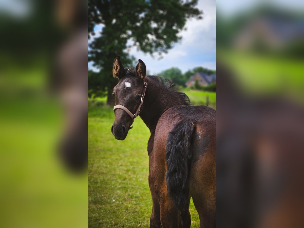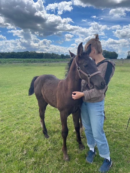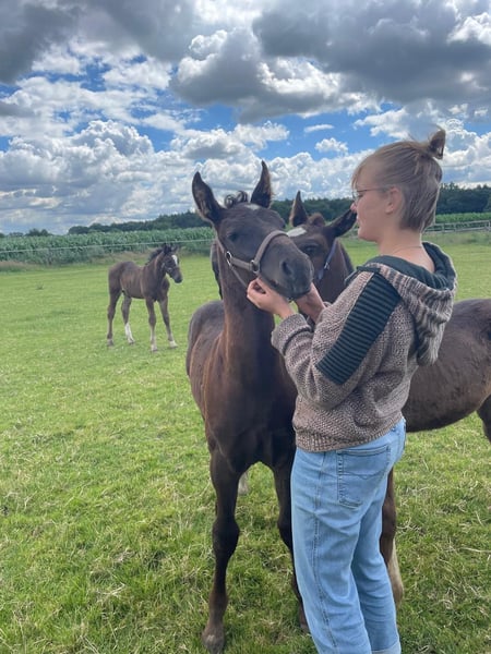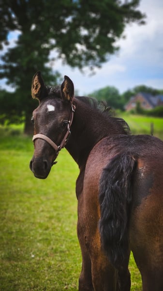 **Advertisement for sale: Beautiful Oldenburg mare for sale** For sale is a noble old Oldenburg mare, born in 2024. This young black mare impresses with her elegant appearance and her impressive movements and her later height of approx. 167 cm. She is ideally suited for breeding and has the best prerequisites to be successful in breeding. Her pedigree and potential make her a valuable addition to any breeding operation. Her parents are both well ridden and driven, have strong nerves and are healthy. This makes this impressive mare suitable for all areas. The dam is also used for vaulting. You can find more Old Oldenburgs from foal to riding horse at: www.braaklanderhof.de We look forward to hearing from you if you are interested and for further information.