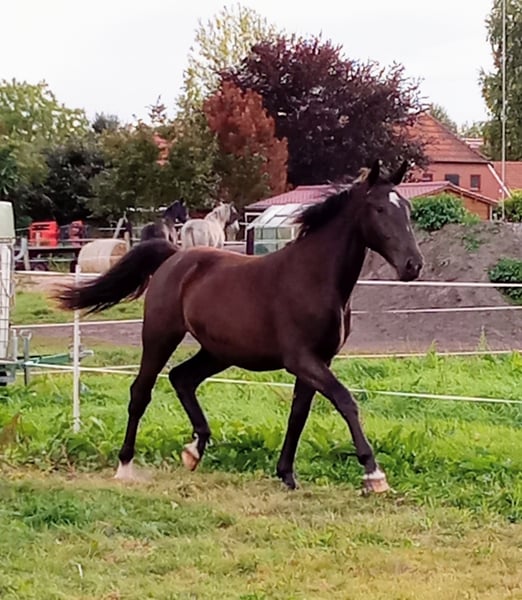 Rapunzel ist eine zweijährige, schöne Stute mit sehr viel Potential für die Zukunft und drei schwungvollen Gangarten. Sie ist dem Menschen sehr zugewand und geht vertrauensvoll in neue Situationen. Besonders hervorzuheben ist ihr wunderbarer Charakter. Immer freundlich und händelbar. Regelmäßig entwurmt und beim Hufschmied vorgestellt. Weiteres gerne auf Anfrage.