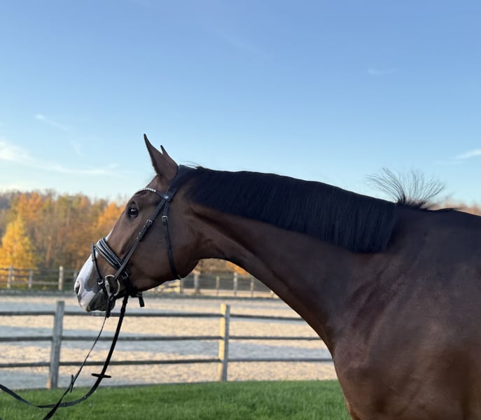 Questa puledra di quattro anni, di colore marrone, si distingue per il suo temperamento equilibrato, la buona maneggevolezza e un talento promettente. In maneggio si mostra sempre docile, semplice e amichevole – sia durante la pulizia che dal ferratore. Anche in passeggiata si comporta con calma e senza paura. In campo ostacoli si presenta con molta chiarezza, cautela e una notevole potenza di salto. Le prime classifiche in Springpferde A confermano le sue capacità e il suo potenziale per il proseguimento della carriera sportiva. Grazie al suo carattere sincero e alla piacevole maneggevolezza, è ideale anche per gli amatori – una giovane puledra con futuro e carattere, che ogni giorno porta gioia.