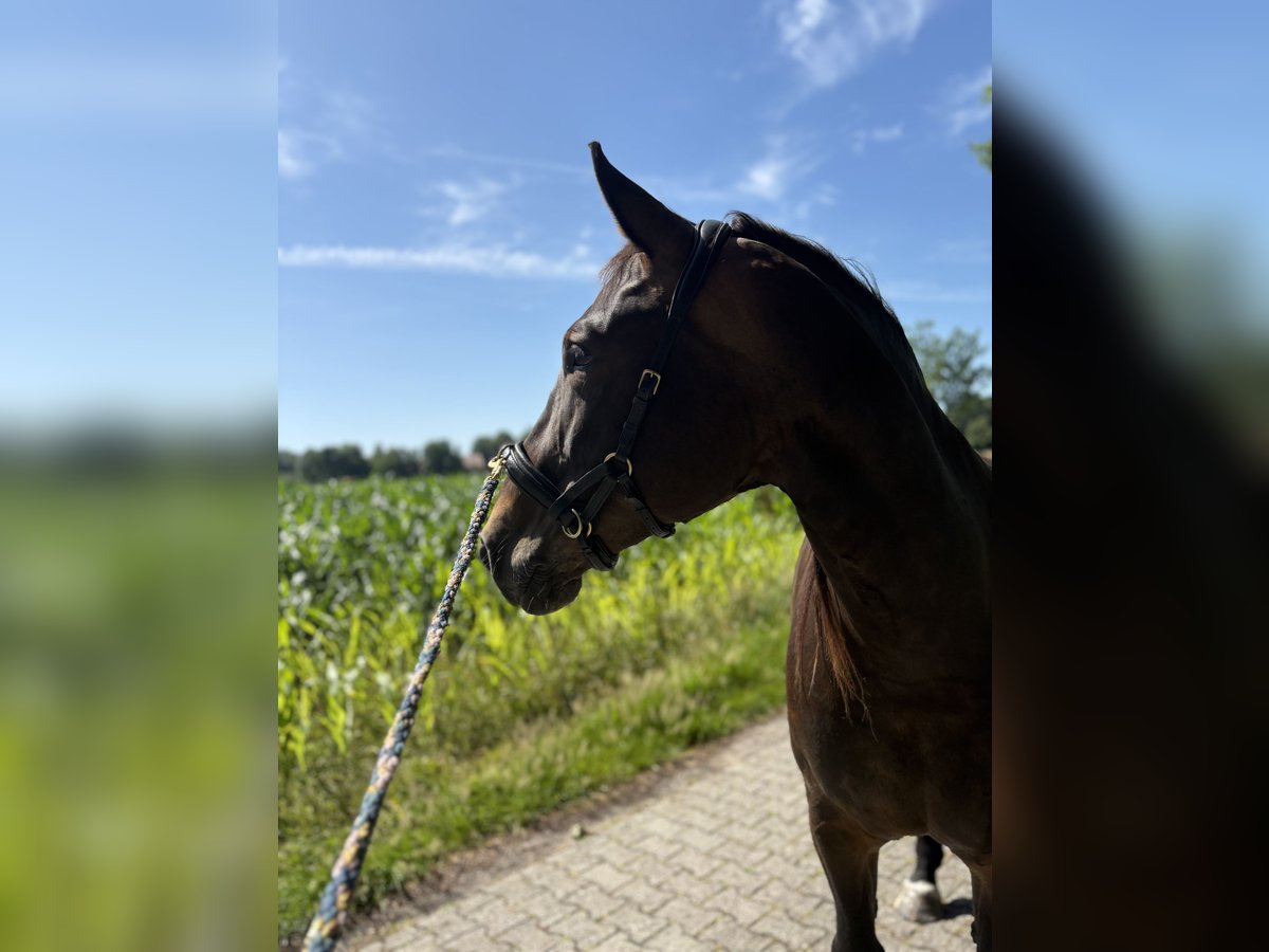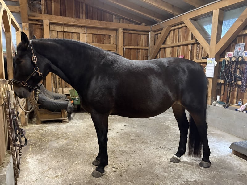 Zum Verkauf steht unsere hübsche Stute Lotte, geboren im Mai 2019, mit einem Stockmaß von ca. 157 cm. Sie ist eine Alt-Oldenburger/Ostfriesen Vater ist Eckstein und Muttervater Don mit vollen Papieren. Lotte hat ein solides Fundament, ein gutes Exterieur und klaren Charakter und wurde beim Vorbesitzer bis Ende 2024 ein- und zweispännig gefahren und sowohl auf dem Reitplatz als auch im Gelände geritten. Bei mir ist sie seit Januar 2025 und aufgrund von Zeitmangel nicht im Training ( Kleinkind und Selbstständigkeit ), kennt jedoch die Arbeit und ist ein ungeschliffener Diamant der geform werden möchte. Sobald das Wetter es wieder zulässt, wird Lotte mit professioneller Unterstützung wieder unter dem Sattel angeschoben und der Preis wird angepasst. Gesundheitlich ist Lotte bestens versorgt: * Hufe werden alle 4-6 Wochen regelmäßig bearbeitet * Regelmäßig geimpft und entwurmt * Regelmäßig osteopathisch behandelt * Zähne wurden zuletzt im März 2025 gemacht * Verladefromm Lotte lebt aktuell im Offenstall und von ca. April – Oktober auf einem Paddocktrail mit begrenztem Weidegang. Lotte gehört zu den eher leichtfuttrigen Pferden und ist hier in der Herde die Chefin, Sie ordnet sich in einer neuen Herde jedoch auch unter. Wenn jemand anderes der Chef ist. Sie wird nicht als Anfängerpferd abgegeben. Lotte braucht eine klare, ruhige und konsequente Führung im täglichen Umgang, dann zeigt sie sich ehrlich und arbeitswillig und ist sehr fein in der Kommunikation. Der Verkauf erfolgt ausschließlich aufgrund von Zeitmangel und Lotte ist zu Schade und jung zum herum stehen - es handelt sich nicht um einen Notverkauf. Ein ausführliches Kennenlernen ist ausdrücklich erwünscht, denn wir wünschen uns einen passenden Menschen, der ihr gerecht wird. Bei ernsthaftem Interesse freuen wir uns über eine Nachricht mit kurzer Darstellung des zukünftigen Zuhauses und ein Persönliches kennenlernen. Der Preis ist verhandelbar, jedoch wird diese tolle Stute nicht unter Wert verkauft. Videos vom Fahren sind vorhanden.