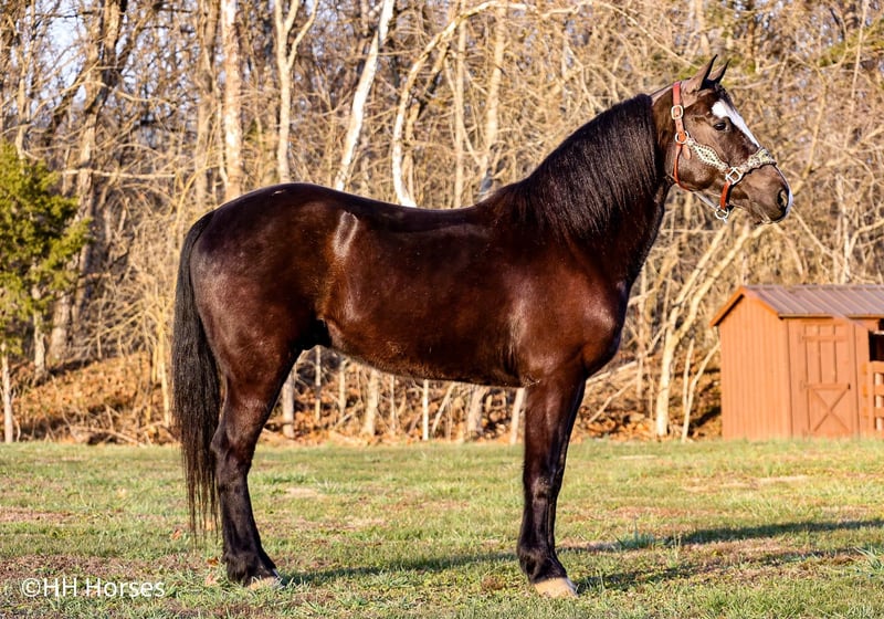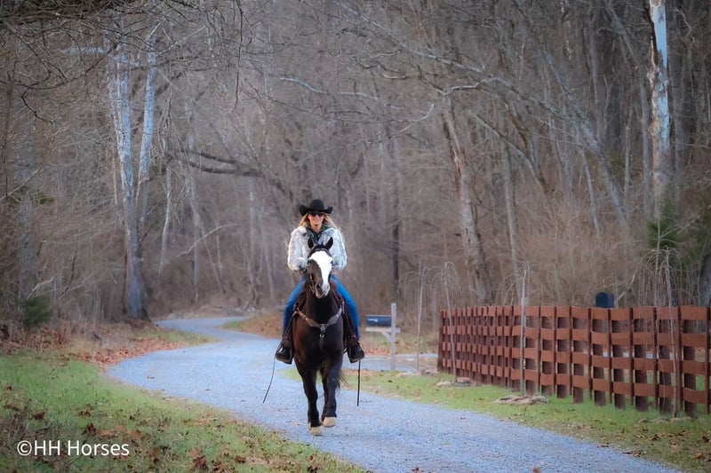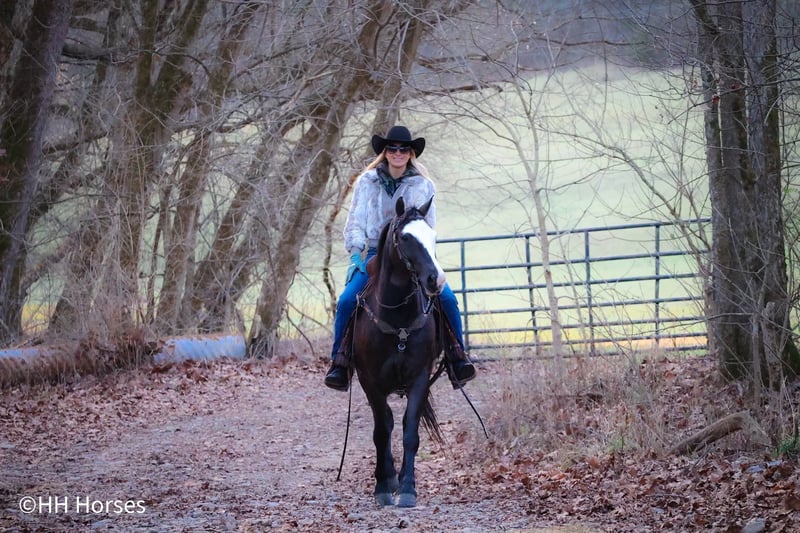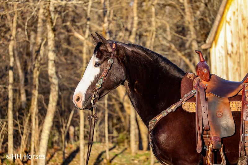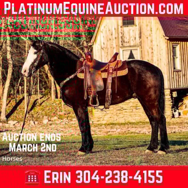 ONLINE AUCTION Place your bids at www.PlatinumEquineAuction.com Starting Bid $3500 Auction ends March 2nd, 2025 Need a new saddle? Check out White Rock Saddles on our website or Facebook! This is “PICASSO”, a very flashy BLACK MORGAN PAINT CROSSBRED GELDING that is broke to ride and drive. He stands 14.2 hands tall and is 5 years old. He is broke to farm machinery, he has pulled, carts, wagons, and sleighs. He is also broke to ride and will trail ride bravely anywhere you want to go. He is very stylish and a nice mover. He is extra fancy with a loud blaze face. He has lots of heart, stamina, and grit. He can go all day long and pull or carry a load. He has excellent ground manners, he stands to harness, hitch, tack, mount, and groom. He rides out alone bravely, he is traffic safe, and has had Amish children ride him to school and drive him to school. He has been driven on the main roads to town to the food store and will stand quietly to the buggy return. He is a very fun horse to ride that can ride in the pastures to check cattle and looks cool under English or Western tack in the arena. He is a very cute gelding with eye appeal, ride, drive, and sense. For more info or to make a Buy It Now offer contact HH Horses Erin 304-238-4155. Located in Flemingsburg, KY. ONLINE AUCTION Place your bids at www.PlatinumEquineAuction.com Starting Bid $3500 Auction ends March 2nd, 2025 Need a new saddle? Check out White Rock Saddles on our website or Facebook!