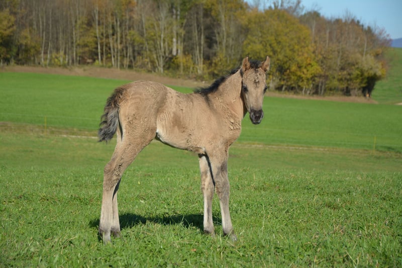 Reinrassiges, außergewöhnlich typvolles Jungpferd – mit Herz, Bewegung und Zukunft! Wir bieten hier eine ganz besondere junge Dame aus unserer Morgan-Zucht an: Unsere am 27. Oktober 2025 geborene reinrassige American Morgan Stute ist ein echtes Juwel – sowohl vom Wesen als auch von ihrer Herkunft. Das American Morgan Horse ist eine der ältesten und edelsten Pferderassen Nordamerikas. Bekannt für seine Vielseitigkeit, Ausdauer, Intelligenz und Menschenbezogenheit, gilt der Morgan als das “Allround-Pferd” schlechthin – ob unter dem Sattel, im Gelände, vor dem Wagen oder in der Zucht. Morgans sind kräftig gebaut, elegant in der Bewegung, mit einem starken Fundament und einem klaren Kopf. Sie zeichnen sich durch ihren ausgeglichenen Charakter, Mut und ihre unerschütterliche Loyalität gegenüber dem Menschen aus – eine Rasse, die Herz und Verstand gleichermaßen begeistert. Unsere junge Stute wächst 100 % reinrassig in einer intakten Herdenstruktur auf – gemeinsam mit Hengst, Stuten und Fohlen, was ihr ein stabiles Sozialverhalten und ein gesundes Selbstvertrauen mit auf den Weg gibt. Sie zeigt schon jetzt eine außergewöhnliche Menschenbezogenheit, ist sehr zutraulich, neugierig, verschmust und begegnet Neuem mit großem Interesse und Gelassenheit. Auf der Wiese präsentiert sie sich bewegungsfreudig, lebendig und voller Energie – ein echter Hingucker mit viel Ausstrahlung! Farbe & Abstammung Ihre Farbe ist derzeit noch in Entwicklung – sie wird sich voraussichtlich zu einem Buckskin oder Grullo entwickeln. • Mutter: eine wunderschöne, typvolle Rapp-Stute, sehr liebevoll, verschmust, lernwillig und fleißig. • Vater: ein dunkler Grullo-Hengst, der durch Intelligenz, Stärke, absolute Nervenruhe und Menschennähe besticht – unerschrocken und charismatisch, wie man es selten findet. Diese Kombination verspricht ein Fohlen mit großem Potenzial – sowohl für Freizeit, Show als auch Zucht. Unsere Stute ist ab frühestens Mai 2026 abzugeben. Bis dahin darf sie in ihrer Herde aufwachsen, regelmäßig besucht werden, um eine Vertrauensbasis zwischen ihr und ihrem zukünftigen Menschen aufzubauen. Wir geben sie nur in beste Hände und artgerechte Offenstallhaltung ab – eine familienähnliche, pferdegerechte Umgebung ist uns besonders wichtig. Ein echtes Herzenspferd für Menschen, die das Besondere suchen – intelligent, edel und voller Lebensfreude. Bei Interesse freuen wir uns über persönliche Anfragen und ein Kennenlernen vor Ort, 8903 Birmensdorf Schweiz.