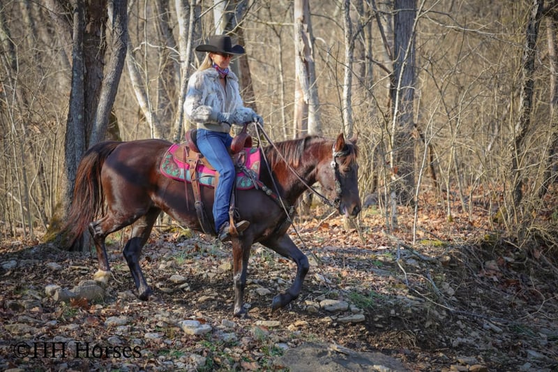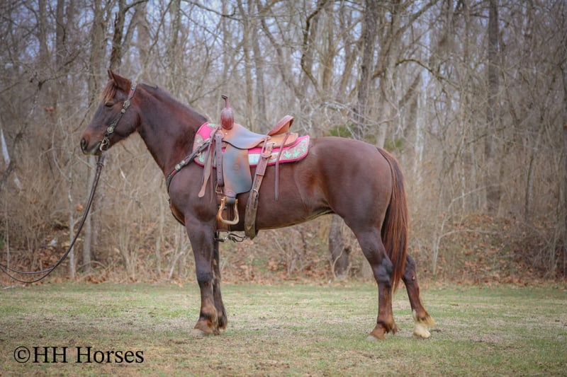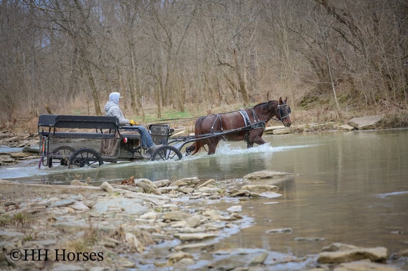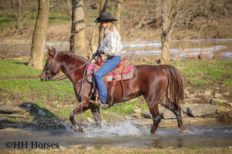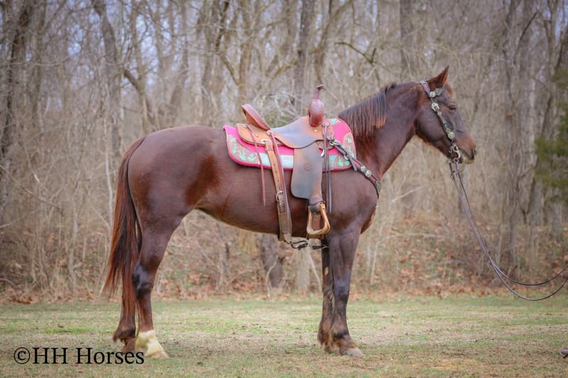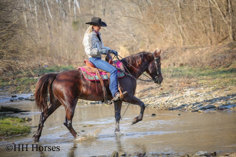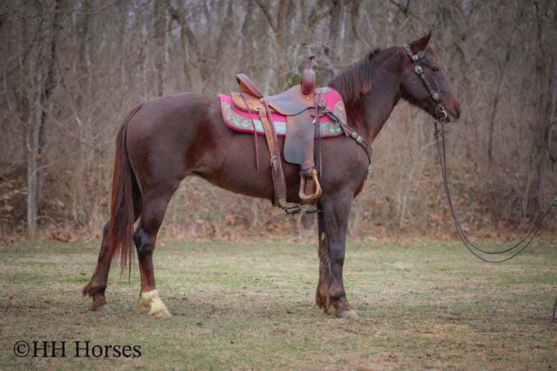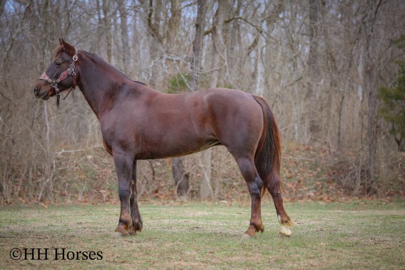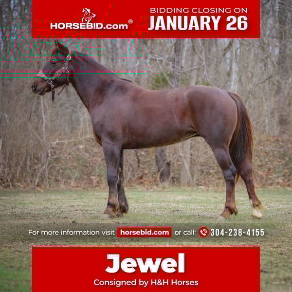 𝐉𝐀𝐍𝐔𝐀𝐑𝐘 ⭐️𝑨𝒍𝒍 𝑺𝒕𝒂𝒓 𝑳𝒊𝒏𝒆𝒖𝒑⭐️ Happening now thru MONDAY | JANUARY 26th - Available EXCLUSIVELY on HorseBid's website! For more details and to register visit: www.Horsebid.com CONSIGNOR CONTACT: H&H Horses 304-238-4155 LOCATION: Flemmingsburg, Ky BREED: Morgan REGISTERED: No COLOR: Chocolate HEIGHT: 14.3 AGE: 8 GENDER: Mare This is "JEWEL", a well broke, super seasoned, solid CHOCOLATE MORGAN MARE that is broke to ride and drive. This mare is 14.3 hands tall and she is 8 years old. She has been hitched and driven by novice teamsters with no issues. She has been through the exotic animals under saddle and harness. She has seen American buffalo, Watusi's, and water buffalo. She is an excellent trail horse that bravely travels through deep water, mud, and steep terrain. She lopes off with no buck and no hump. This mare is a fun horse to ride, she walks out nicely, and she is super confident. She has been driven to town and is traffic safe. She is not spooky, she has excellent ground manners, stands tied, bathes, hauls, and loads with no trouble. This mare is nice looking, well built, sturdy, and experienced. She is a forward horse, yet very easy to steer and stop. She backs up nicely under harness of saddle. She will move out when asked and has lots of heart and stamina. She has pulled a 4 wheeled wagon, a 2 wheeled cart, a sled, and and a carriage. She gets along well with other horses and farm animals. View video at https://www.youtube.com/watch?v=wf8uqncm2D8&t=14s call or text 304-238-4155 . We can help arrange delivery anywhere in the United States