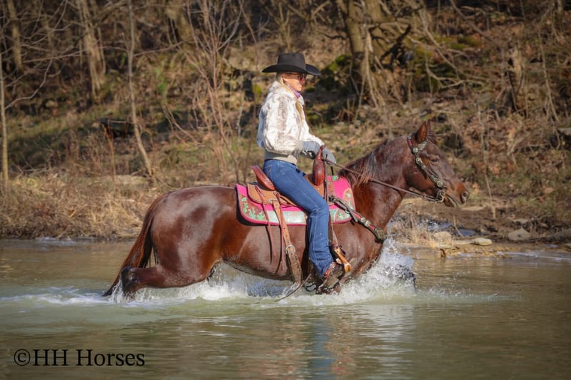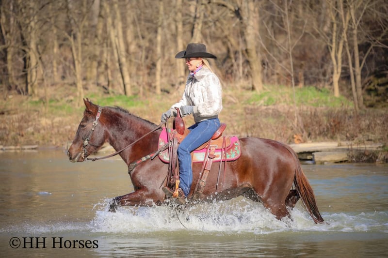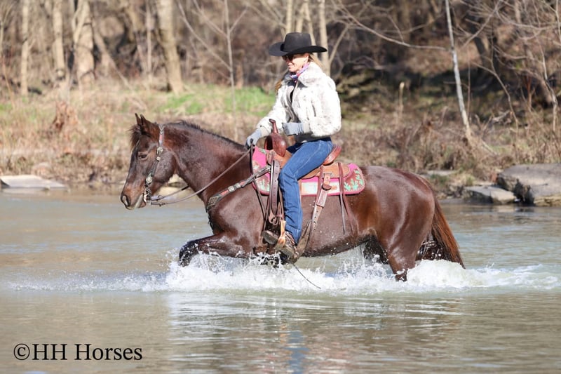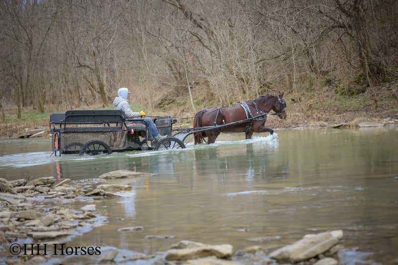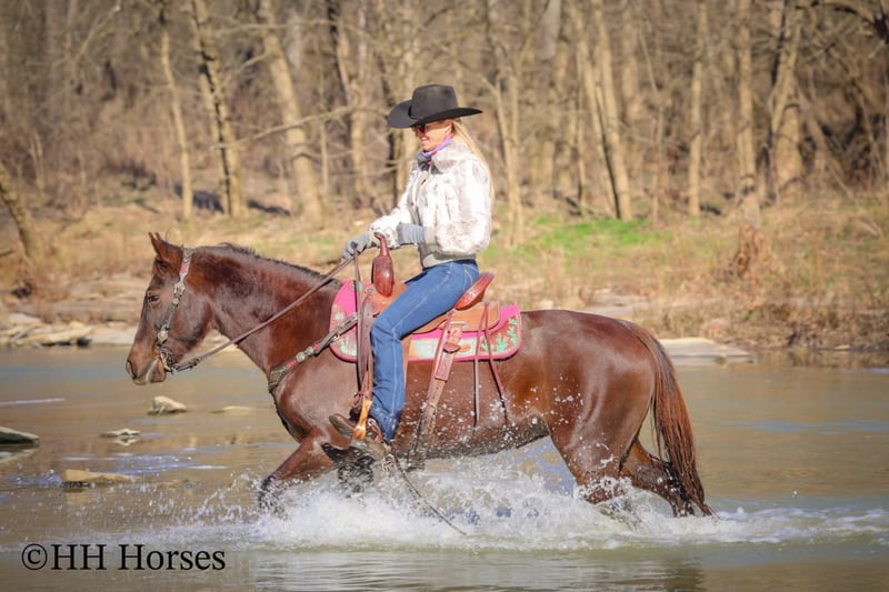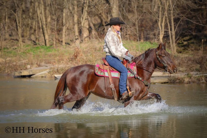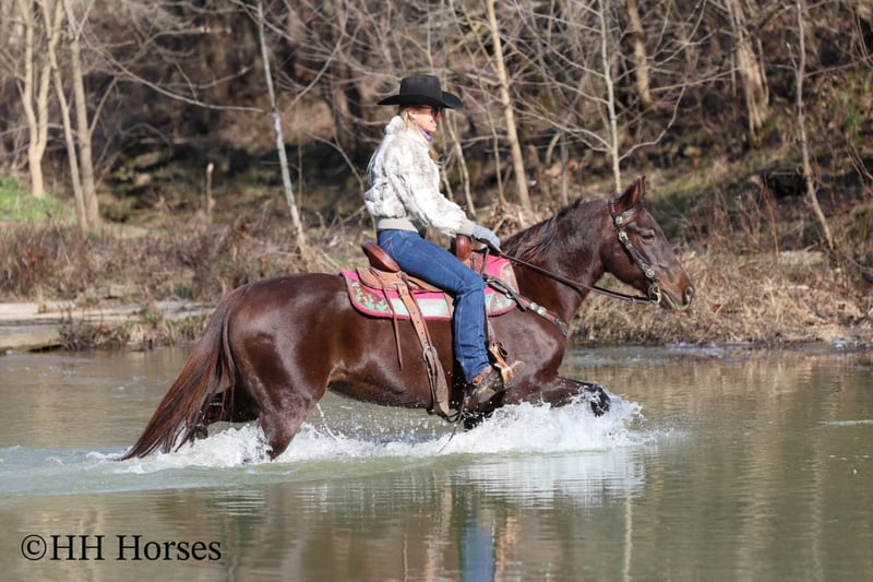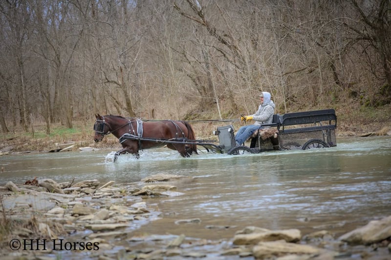 𝐉𝐀𝐍𝐔𝐀𝐑𝐘 ⭐️𝑨𝒍𝒍 𝑺𝒕𝒂𝒓 𝑳𝒊𝒏𝒆𝒖𝒑⭐️ Happening now thru MONDAY | JANUARY 26th - Available EXCLUSIVELY on HorseBid's website! For more details and to register visit: www.Horsebid.com CONSIGNOR CONTACT: H&H Horses 304-238-4155 LOCATION: Flemmingsburg, Ky BREED: Morgan REGISTERED: No COLOR: Chocolate HEIGHT: 14.3 AGE: 8 GENDER: Mare This is "JEWEL", a well broke, super seasoned, solid CHOCOLATE MORGAN MARE that is broke to ride and drive. This mare is 14.3 hands tall and she is 8 years old. She has been hitched and driven by novice teamsters with no issues. She has been through the exotic animals under saddle and harness. She has seen American buffalo, Watusi's, and water buffalo. She is an excellent trail horse that bravely travels through deep water, mud, and steep terrain. She lopes off with no buck and no hump. This mare is a fun horse to ride, she walks out nicely, and she is super confident. She has been driven to town and is traffic safe. She is not spooky, she has excellent ground manners, stands tied, bathes, hauls, and loads with no trouble. This mare is nice looking, well built, sturdy, and experienced. She is a forward horse, yet very easy to steer and stop. She backs up nicely under harness of saddle. She will move out when asked and has lots of heart and stamina. She has pulled a 4 wheeled wagon, a 2 wheeled cart, a sled, and and a carriage. She gets along well with other horses and farm animals. View video at https://www.youtube.com/watch?v=wf8uqncm2D8&t=14s call or text 304-238-4155 . We can help arrange delivery anywhere in the United States
