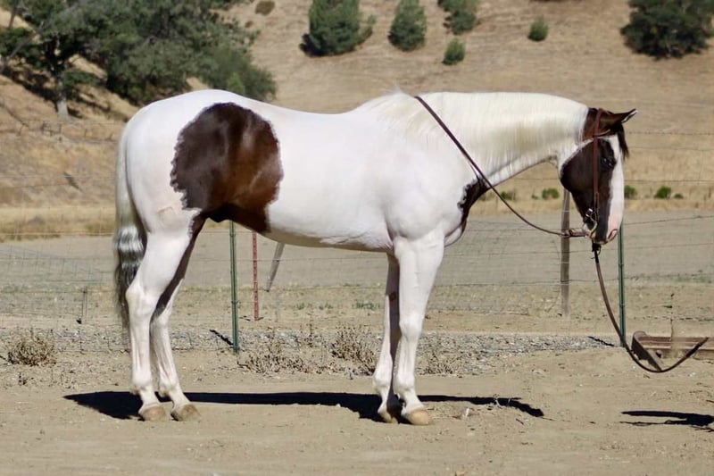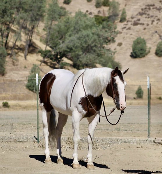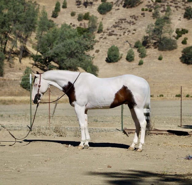 ONLINE AUCTION Place your bids at www.PlatinumEquineAuction.com Starting Bid $3500 Auction ends August 24th, 2025 Need a new saddle? Check out White Rock Saddles on our website or Facebook Aye Aye Pirate – The Treasure You’ve Been Hunting For! Drop anchor—your dream horse just surfaced. Meet Aye Aye Pirate, or just Pirate to his crew—a 10-year-old, 14.3-hand paint gelding with the kind of ride, temperament, and good looks that make him a rare treasure. Pirate is truly one of the gentlest, most dependable horses we’ve had the pleasure of offering. He’s kind, patient, and incredibly forgiving—making him an ideal choice for riders of all levels. Whether you’re brand new to horses, getting back in the saddle after years away, or just want a steady mount you can trust in any setting, Pirate will take care of you every step of the way. On the trail, he’s as solid as they come. He’s confident, sure-footed, and careful without being sluggish. He’ll navigate water crossings, rocky terrain, steep hills, narrow bridges, downed trees, tarps, tires, and pool noodles like a seasoned scout. And he does it all without hesitation or drama—ears forward, eyes soft, and completely tuned in to his rider. Pirate doesn’t just tolerate the trail—he thrives on it. He’s also a total dream to ride down the road. Cars, trucks, barking dogs, bicycles, strollers—you name it—he’s seen it and walked right on by with a quiet confidence that’s hard to find. He’ll go out alone or in a group and never loses his cool. In the arena, Pirate keeps things simple and fun. He lopes off soft, neck reins easily, stops off your seat, and moves right off your leg. He’s smooth, correct, and easy to ride—even for beginners—but he’s broke enough to keep seasoned riders smiling. Need a little style? He’ll roll into a smooth spin that’ll make you grin. He’s been used on the ranch too—gathering cattle, opening gates, branding and roping. But what truly makes Pirate special is his heart. He’s got that rare “babysitter” brain paired with enough buttons to still be enjoyable for a confident rider. He’s sweet without being dull, willing without being pushy, and always ready to meet you at the gate. In the barn, he’s just as easy. Catches without a chase, saddles and bridles without a fuss, great for the farrier, and loads and hauls like a seasoned traveler. Stall or pasture, alone or with others—he’s happy wherever you put him. So if you’ve been searching for that once-in-a-lifetime gelding—the one you can trust with your kids, your grandma, your cowboy friend, or just yourself on a solo sunset ride—Pirate is the one you’ve been waiting for. Located in Paicines, CA 📞 Call or text Dina at Longhorn Ranch – 831-537-1915. ONLINE AUCTION Place your bids at www.PlatinumEquineAuction.com Starting Bid $3500 Auction ends August 24th, 2025 Need a new saddle? Check out White Rock Saddles on our website or Facebook