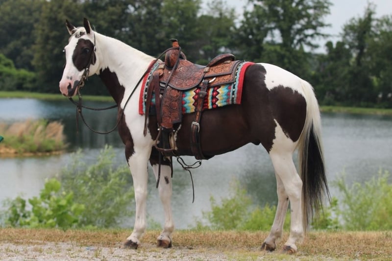 ♦️ MID-SUMMER SHOWCASE ♦️ Happening now thru MONDAY | JULY 14TH - Available EXCLUSIVELY on HorseBid's website! For more details and to register visit: www.Horsebid.com CONSIGNOR CONTACT: J & S Livestock 409-221-5546 LOCATION: Robards KY BREED: Paint REGISTERED: Yes REGISTERED NAME: Tsalagi Equa Asgoli COLOR: Black & white HEIGHT: 14.2 AGE: 12 GENDER: Gelding Looking for a splash of color in your life? Let me introduce to you chief. Chief is an astonishing, 12-year gelding with enough color and flash to get you noticed everywhere you go. Chief stands 14.2 hands & weighs around 1100lbs. He is an excellent mover and flat kneed. He execute all maneuvers with ease. Smooth walk, trot, & canter picks up both leads. Side passes and will work gates. Chief has spent most of his life as a trail mount; riding fences in Oklahoma for an older women. Who owned him most of his life. He has been extensively rode over the obstacle courses, bridges, logs and has been ridden around machinery and traffic. We have used him to pony & desensitized the babies in our colt starting program. Chief loads, bathes and stands like a perfect gentleman for the farrier. Chief sells up to date on vaccinations, worming, coggins, & farrier. Don't miss your chance to own this cool horse. Call today to set up an appointment to meet Chief.