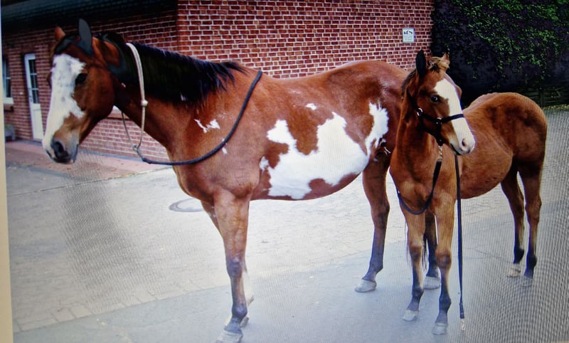 Jack ist 2010 geboren, ca. 1,60 m groß. Er ist seit Absetzer bei mir. Er steht bei mir nur im Offenstall und kommt damit sehr gut zurecht. Im Moment steht er mit vier Stuten zusammen und ist Chef. Mit zwei Jahren habe ich angefangen ihn als Handpferd mit ins Gelände zu nehmen, auch beim Umtrieb unserer Kühe. Mit vier Jahren war er 2x im Profiberitt. Seitdem wird er freizeitmäßig western geritten. Leider fehlt mir inzwischen die Zeit ihm wirklich gerecht zu werden. Ich hatte fast 10 Jahre eine Reitbeteiligung für ihn, aber diese ist jetzt schwanger und wird auch nicht mehr kommen können. Jack braucht eine Bezugsperson die viel Zeit für ihn hat. Er kennt Bodenarbeit, Longe, Platzarbeit und Gelände. Er ist schmiedefromm (barhuf) und kennt den Hänger. Wobei er jetzt länger nicht gefahren werden musste. Zähne wurden im Juni gemacht und die Hufe alle 5 Wochen. Er ist geimpft und entwurmt. Tierarzt ist kein Problem. Er buckelt nicht, steigt nicht und geht nicht durch. Bei der Platzarbeit ist er eher faul, macht aber mit. Meine RB ist ihn sehr viel auf dem Platz geritten, auch oft mit Unterricht. Ich war mit ihm mehr im Gelände unterwegs. Autos und Trecker sind kein Problem. Jack ist voll reitbar und hat keine gesundheitlichen Einschränkungen. Jack ist vom Charakter nicht ganz einfach und eher dominant. Er braucht eine klare und sichere Führung. Unsichere Personen stellt er in Frage, die sollten nicht mit ihm umgehen. Er ist definitiv kein Anfängerpferd, zumindest was den Umgang mit ihm angeht. Auf dem letzten Bild ist der Stammbaum seines Vaters zu sehen. Seine Mama war eine amerikanische bunte Paintstute ohne Papiere. Siehe letzten Fotos. Ich würde ihn gerne mit passendem Westernsattel (California Brand Saddlery) abgeben, der ist im Preis mit inbegriffen. Mir ist es wichtig, dass er ein gutes neues Zuhause bekommt und dort alt werden darf. Weitere Infos gerne telefonisch. Es ist absolut kein Notverkauf und mir liegt seine Zukunft am Herzen. Platz vor Preis.