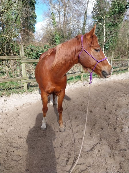 Paint Horse Wallach sucht neues Zuhause. Wir suchen für unseren 16 jährigen Paint Horse Wallach ein neues Zuhause. Splash hat eine solide Westerngrundausbildung genossen. Er ist fein zu reiten, testet jedoch zeitweise aus, so dass er einen konsequenten, aber gefühlvollen Reiter benötigt. Aufgrund von Zeitmangel wurde er in letzter Zeit nur wenig gearbeitet und muss daher wieder antrainiert werden. Splash ist ein rangniedriger, sehr verspielter Wallach. Er lässt sich problemlos in die Herde integrieren und im täglichen Umgang ist er menschenbezogem und leicht zu händeln. In der Bodenarbeit arbeitet er willig mit. Jedoch sollte man auch vom Boden aus konsequent sein. Im Gelände ist er in Begleitung eines zweiten Pferdes sehr brav und rittig. Er ist insgesamt eher ein gemütlicher Typ mit sehr bequemen Gängen. Er ist jedoch auch ein Pferd, dass sich schnell stark an andere Pferde bindet. Sowohl beim Tierarzt als auch beim Schmied ist er sehr brav. Verladen lässt er sich ebenfalls gut, gefahren ist er jedoch nur mit einem zweiten Pferd. Er ist an alle möglichen Lärmquellen wie Traktor, Kettensäge etc. gewohnt und sehr entspannt und nicht guckig. Wir geben ihn schweren Herzens aufgrund familiärer Veränderungen und Zeitmangel ab. Er lebt bei uns im Offenstall/ Weide und kennt keine Boxenhaltung. Daher geben wir Ihnen auch nur in eine ähnliche Haltungsform ab. Wir wünschen uns für ihn einen liebevollen Menschen der Lust auf ein interessantes, nicht abgestumpftes Pferd hat. Es gilt definitiv Platz vor Preis.