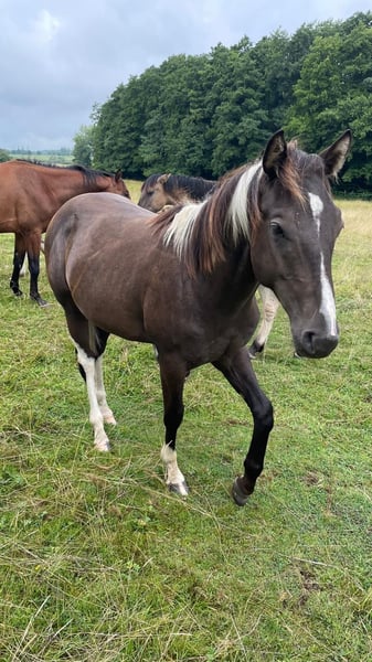 American Paint Horse gelding, born in 2024, in the elegant Buckskin color. He will become a versatile partner, suitable for both sport and leisure riding. This young gelding impresses with his balanced temperament, eagerness to learn, and friendly nature. He is familiar with groundwork and walks out comfortably. The American Paint Horse is known for its distinctive coat patterns and sturdy build. His friendly disposition, willingness to learn, and striking appearance make him a special horse that brings joy both in everyday riding and training. If interested, I am happy to provide further information and arrange a viewing.