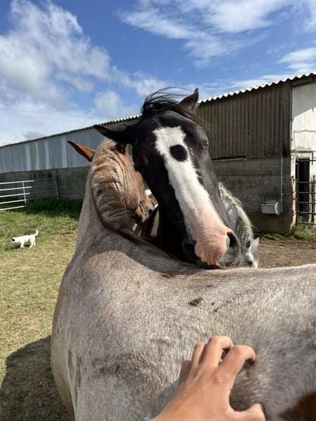 Zu verkaufen steht der 2023 geborene Paint Horse Wallach BUTTONS JIMBEAM (aus DD CHAMPAGNE BUTTON x CHARMED WITCH JOSIE) mit dem Spitznamen „JOE“. Joe ist seit er 1 Jahr alt ist in meinem Besitz, und ist ganz ernst gemeint das entspannteste und freundlichste Jungpferd welches ich bisher kennen lernen durfte. Joe kam unter Umwegen zu mir und war zu Beginn nur für vorübergehend geplant bei mir zu leben, später hab ich mich dann dazu entschlossen ihn bis er dreijährig ist zu behalten und für ihn dann ein passendes Zuhause zu finden. Ich gebe den hübschen Kerl nur aus den Händen, da er sich für meine persönlichen Ambitionen nicht eignet (eignen wird) und ich schon zwei super coole und gelassene Allroundpferdchen daheim habe! Ein paar Infos zu JOE: - er ist immer gesund gewesen - regelmäßig entwurmt & geimpft - regelmäßig Hufe bearbeitet - gutes Mineralfutter & Zusatzfutter bekommen - kennt Herdenhaltung (gemischt) sowie Boxenhaltung mit Auslauf - ist extrem sozial, kommt mit jedem Pferd aus und ist sehr verspielt - kennt Handpferdeausritte - kennt Spazieren gehen - kennt Bodenarbeit (frei im Roundpen, an der Longe, Stangenarbeit, Doppellonge) - kennt Sattel - kennt Reitergewicht mit und ohne Sattel - wurde von mir bisher erst 3x richtig frei geritten, ansonsten nur drauf gesessen, hoch und runter etc - ist total lieb mit Kindern - kennt Hunde, Katzen, Hühner, Kühe, Schafe - ist bestens vorbereitet auf eine Zukunft als Reitpferd - kennt Desensibilisierungsarbeit - ist absolut nicht schreckhaft und kennt allerlei Hofmaschinen, Traktoren, Laubbläser, LKWS etc - steht super da, gut bemuskelt, aktuell aber noch im Wachstum - keine AKU vorhanden - kennt Hängerfahren vom Stall zur Weide sowie Transport vom vorherigen Stall zu mir - hat APHA Papiere & Equidenpass & Transfer Report Ich wünsche mir für Joe ein absolutes Traumzuhause. Ob er sich für den Sport eignen wird kann ich nicht abschätzen, er hat keinerlei Einschränkungen und wenn man ihm genügend Zeit lässt in der Ausbildung wird er sich sicherlich zu einem sehr talentierten Pferdchen entwickeln. Ich sehe ihn in Richtung Trail, Horsemanship, Pleasure oder Ranch Horse sowie als Familien- und Freizeitpferdchen. Kühe kennt er in- und auswendig von unserem Hof, zeigt aber überhaupt keinen Cow-Sense oder weiteres Interesse. Ich wünsche mir für ihn Herdenhaltung oder aber Box mit Weide (zusammen mit anderen Pferden) da er wirklich super gerne spielt und sonst schnell gelangweilt wird. Er ist ein Pferd mit absolut wenig „Go“ und eher der faule Typ, er ist aber immer interessiert und 100% freudig dabei bei der Arbeit. Er liebt das Gelände und ist dort eine richtige Lebensversicherung. Mehr Infos gerne per pn oder per WhatsApp an +49 163 7829 753 Auf den letzten Fotos seht ihr Joe mit seiner Mama CHARMED WITCH JOSIE und auf einem anderen Foto seinen Papa DD CHAMPAGNE BUTTON. Auf dem Bild in welchem ein zweiter Paint Horse Wallach Nase an Nase mit Joe steht, seht ihr seinen Halbbruder JACK, welcher auch bei mir im Training war (und wieder kommt) und genau so gute Eigenschaften mitbringt wie mein JOE!