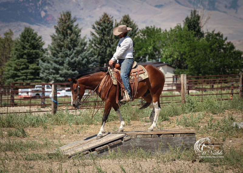 𝕄ℂℕ𝔸𝔹𝔹 𝕃𝕀𝕍𝔼𝕊𝕋𝕆ℂ𝕂's 🍂𝟑𝟎𝟕 𝐅𝐀𝐋𝐋 𝑺𝒑𝒆𝒄𝒊𝒂𝒍🍂 Happening now thru MONDAY | SEPTEMBER 15th - Available EXCLUSIVELY on HorseBid's website! For more details and to register visit: www.Horsebid.com CONSIGNOR CONTACT: McNabb Livestock LLC 307-250-0900 LOCATION: Cody, Wy BREED: Paint REGISTERED: No COLOR: Bay Tobago HEIGHT: 14.1 AGE: 3 GENDER: Gelding Jackpot is absolutely the best minded young horse we have the privilege of having in our program. He is just naturally so smart, sweet, kind and has a gentle demeanor all the time. Our neighbor purchased him as a yearling from the breeder. We fell in love with him and bought him from them as a 2yr old. He was lightly started at 2, trail rode all over the mountains, then broke to drive and this year we have been doing ranch work with him and he has taken everything is stride. He has never been spooky or offered to buck. This fall we have allowed our 4yr daughter to ride him in the indoor arena, we are not selling him as a beginner’s kids horse but he sure has the mind and the right disposition to be one in a few years. Our 11yr son rides him everywhere bareback. Jackpot is super smooth to ride, naturally low headed. Soft in the bridle. He lopes pretty circles, knows his leads, has a good stop and turn around. Jackpot is sweet, kind and loving. He’s in-your-poctet but has lots of manors and is very polite. He has no vices or bad habits. He will ride out alone or he’s happy in a group. He has everything going for him. Excellent conformation, soft kind eye, gentle disposition, with the right amount of chrome to make him flashy. He has had a basic PPE, up to date on worming, dental and farrier. We welcome you to do your own PPE and to come to the ranch a to meet Jackpot. We also are glad to help arrange transportation. We will hold the horses at no charge for a reasonable amount of time to get hauling arranged. For more information call 307-250-0900.