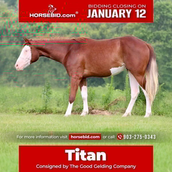 ♦️𝐍𝐄𝐖 𝐘𝐄𝐀𝐑'𝐒 𝑬𝒙𝒕𝒓𝒂𝒗𝒂𝒈𝒂𝒏𝒛𝒂♦️ Happening now thru MONDAY | JANUARY 12th - Available EXCLUSIVELY on HorseBid's website! For more details and to register visit: www.Horsebid.com CONSIGNOR CONTACT: The Good Gelding Company 903-275-0343 LOCATION: Athens, TX BREED: Apha REGISTERED: Yes REGISTERED NAME: Electric Gunz COLOR: Sorrel overo HEIGHT: 14.3 AGE: 4 GENDER: Gelding Electric Gunz, known in the barn as Titan, is a 4-year-old sorrel overo bald-faced gelding with blue eyes and the kind of ability and disposition that most buyers are looking for. Standing 14.3 hands, Titan is compact, athletic, and built to excel. Bred for the reining pen, Titan is by Epic Titan and out of an Electric Code daughter, combining proven bloodlines with exceptional natural talent. He is a legitimate reining prospect, showing plenty of athleticism, willingness, and feel, while maintaining a quiet, forgiving demeanor that makes him enjoyable to ride every day. Titan has been extensively ridden and exposed, traveling throughout Texas and the Appalachian Mountains. He is seasoned beyond his years, confidently handling new environments, terrain, and situations with a steady, level-headed approach. His reliability and mindset have made him a valuable horse to have around, and he has even been used to help start other colts, demonstrating his confidence and dependability. What truly sets Titan apart is his mind. He is easy to ride, forgiving, and safe for any level of rider, making him suitable for a wide range of homes. Whether you are looking for a serious reining prospect, a versatile all-around partner, or a flashy, well-bred gelding with miles and experience, Titan checks all the boxes. With his eye-catching color, exceptional pedigree, talent, and rock-solid disposition, Electric Gunz is the kind of horse that can take you in any direction — and look good doing it.