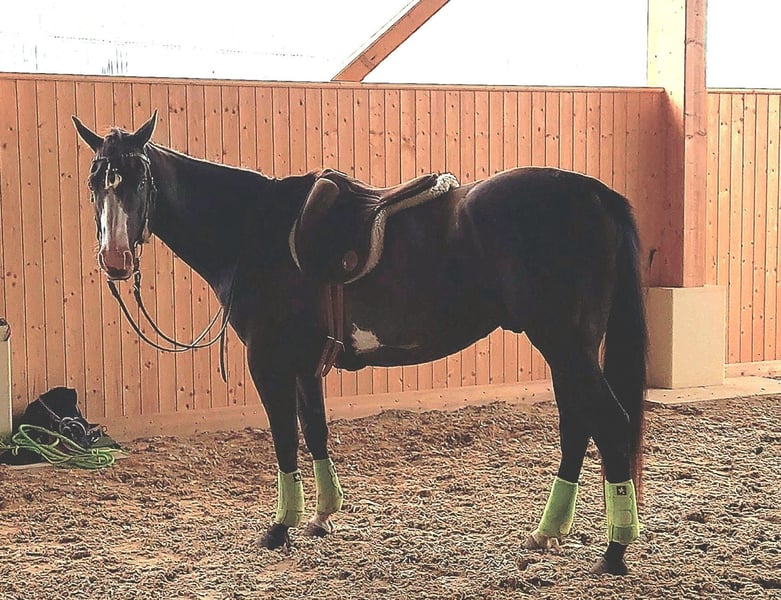 READY TO START “RCR Black Jack” has just turned 4 years old, a promising Paint Horse gelding (APHA) in the special color smoky black overo (a/a, E/e, nd2/nd2, CR/n, LWO/n). Blacky has nerves of steel, is curious, always willing to please, and is very people-oriented. When he trusts his person, he will do anything for them. He is very easy to handle in all everyday situations, making interactions with him very simple and pleasant. Description: - Paint Horse gelding, 4 years old, approx. 1.51m tall, color: smoky black overo - APHA papers and E-pass - Detailed health genetics via stallion, 6-panel test, DNA profile - Teeth freshly done, regularly vaccinated + dewormed - Versatile with a special talent for extreme trail obstacles - Solid basic training: Natural Horsemanship, groundwork, lunging, long lining, desensitization. - Knows rider weight and initial steps under saddle, always cooperative and eager to do everything right - Can also be handled by children - Loads easily onto the trailer and travels calmly alone - Stands quietly for the farrier (wears front shoes) and for the vet (vaccinations), he has never been sick here - Familiar with all equine everyday situations such as tying, grooming, deworming, traffic, tractors, dogs, etc. - Blacky has NO vices - No box confinement desired! You are buying directly from the breeder! Our Red Color Ranch is located in southern Mecklenburg. We have been successfully breeding pleasant equestrian partners for leisure and sport for many years. We specialize in the raising/education/training of foals and young horses. All horses live in a natural environment on large pastures with open stabling and are handled daily. The foals live with their mother mares until they reach sexual maturity, after which the stallions move to a gelding group. The mares remain in the original herd. This method of upbringing produces well-socialized horses that are completely clear-headed. In daily handling, the foals already learn to be tied, led, give their hooves, and be shod. Detailed preparation for riding begins at three years old, with training starting at the earliest at four years old. A veterinary examination can be commissioned at the buyer's expense. Please understand that written inquiries cannot be answered due to time constraints. If you are interested, please call 0174 9701525.