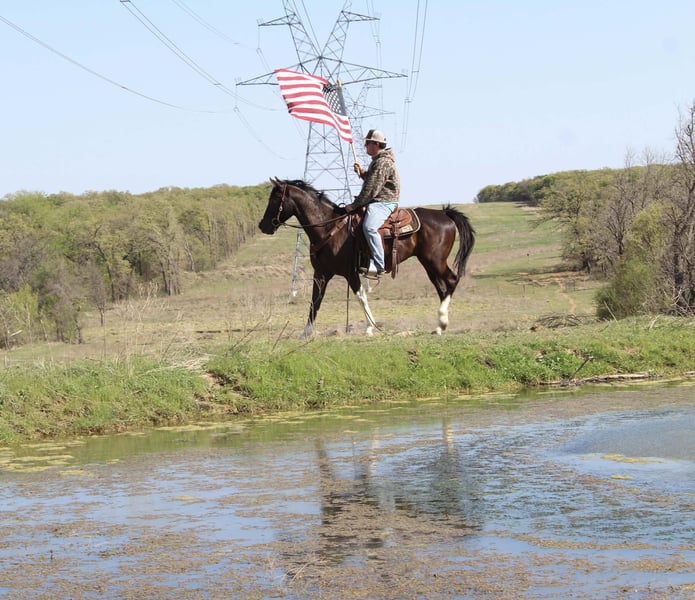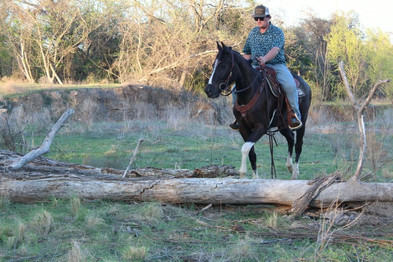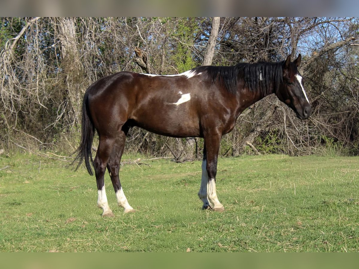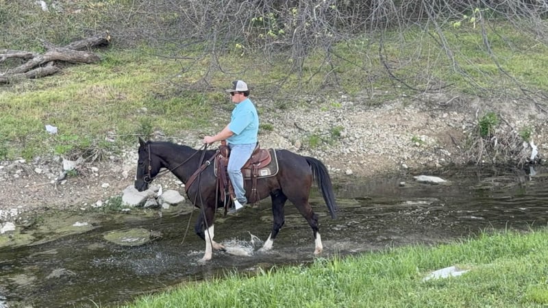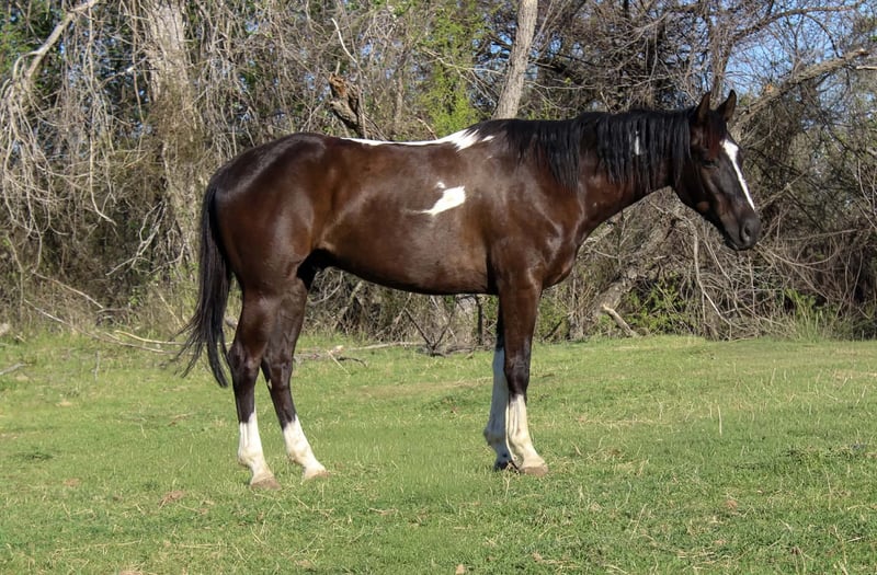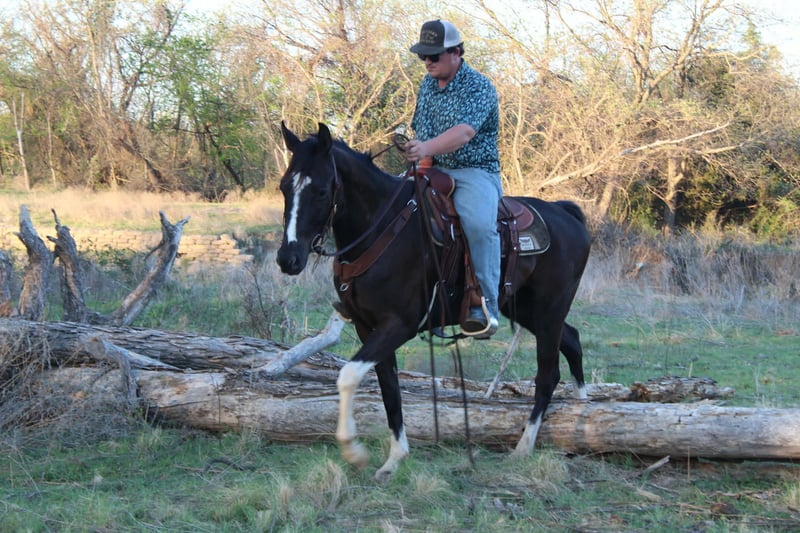 ¡Un potro de 4 años, tobiano negro, extremadamente atlético y confiable!
