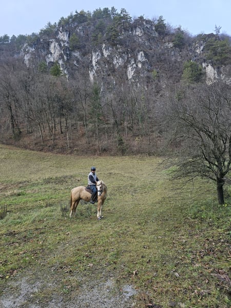 Schöner 3,5-jähriger Wallach mit großem Potenzial, seit 3-4 Monaten im Reittraining. Er braucht noch etwas Arbeit, zeigt aber viel Perspektive. Er kennt die Arbeit in der Arena sowie Ausritte, ist gesund mit kräftigen Beinen und Hufen (Barhuf). Sehr freundliches Wesen, unproblematisch im Herdenverband.