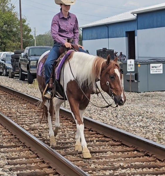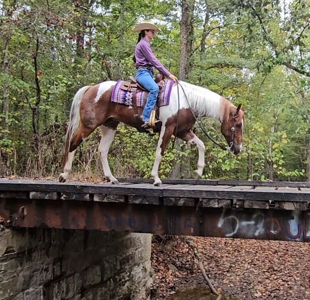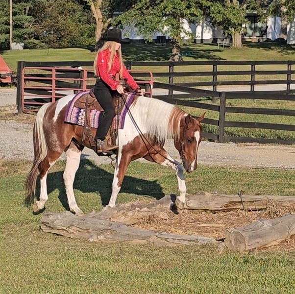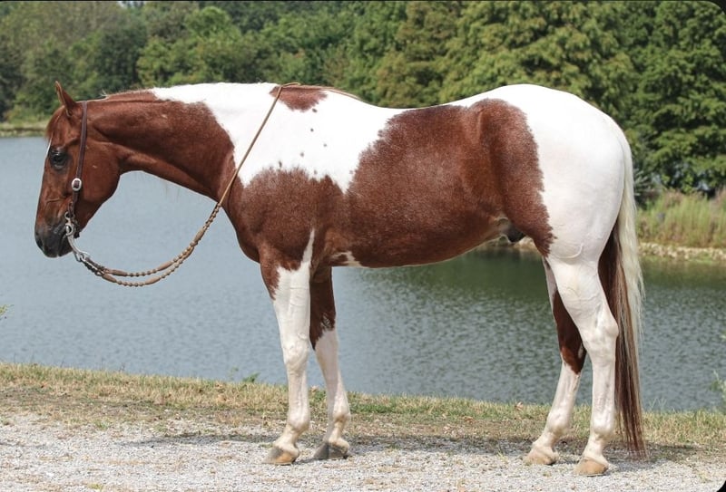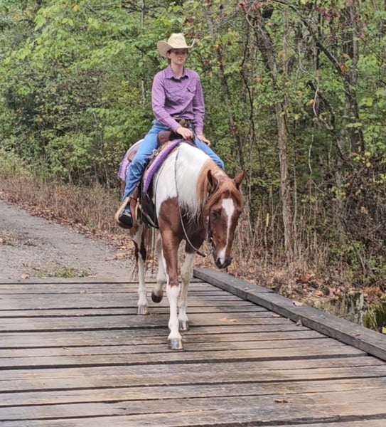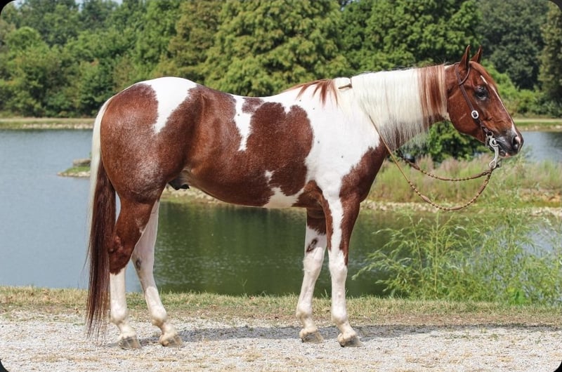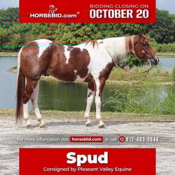 ♦️ 𝐭𝐡𝐞 𝐀𝐌𝐄𝐑𝐈𝐂𝐀𝐍 𝓕𝓪𝓵𝓵 𝓒𝓵𝓪𝓼𝓼𝓲𝓬 ♦️ Happening now thru MONDAY | OCTOBER 20th - Available EXCLUSIVELY on HorseBid's website! For more details and to register visit: www.Horsebid.com CONSIGNOR CONTACT: Pleasant Valley Equine 812-483-3948 LOCATION: Robards, KY BREED: PAINT Papers REGISTERED: Yes REGISTERED NAME: I RIGGED THE WORDS COLOR: Tobiano HEIGHT: 15.2 AGE: 4 GENDER: Gelding Check out this big, beautiful, broke gelding we call Spud! Spud aka “I RIGGED THE WORDS” is a flashy sorrel tobiano gelding standing at 15.2H weighing 1100lb. Spud is ready to go in any direction you want! Whether you’re looking for a lifelong trail mount, a promising show prospect, or a fun relaxing ride at home, Spud is up for the task! This guy is full of personality and is as easy going as they come! We’ve rode spud through traffic, by a moving train, shot off guns, and so much more. Seriously, nothing bothers this guy! Check out spuds video to really see what all he can do! Talk about a flashy gelding- this guy turns heads everywhere he goes! Not only does he look good sitting out in the field but he’s a pretty mover too! Spud has a correct foundation under his belt. He’ll walk, trot, and canter inside or outside the arena, gives to the bit laterally and vertically, stops, backs, and is simple to ride! He has also been started on show maneuvers and over fences. Spud is extremely versatile and could excel in many different disciplines such as hunter jumper, English eq, fox hunting, mounted shooting, ranch riding, horsemanship, etc. The sky’s the limit with this guy! Spud is very easy going and will ride off the same after having time off. He’s the first one to meet you at the gate and does well living inside or outside. He stands well to be bathed, saddled, shod, clipped, etc with no issues! Spud has no vices and requires no maintenance. He is UTD on vaccines, dental, coggins, worming, and shoes. If you have any questions or want to meet Spud please call or text Sydney Krietemeyer at 8124833948!
