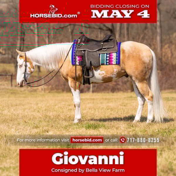 ▪️▫️◾️𝐭𝐡𝐞 𝑴𝒂𝒚 𝐒𝐞𝐥𝐞𝐜𝐭◾️▫️▪️ Happening now thru MONDAY | MAY 4th - Available EXCLUSIVELY on HorseBid's website! For more details and to register visit: www.Horsebid.com CONSIGNOR CONTACT: Bella View Farm 717-880-8255 LOCATION: Grantville, PA BREED: APHA REGISTERED: Yes REGISTERED NAME: COMPANYS PROPHET COLOR: Palomino HEIGHT: 15.2 AGE: 4 GENDER: Gelding ✨ Giovanni A Once‑in‑a‑Lifetime Horse ✨ Giovanni is the kind of horse people search for years to find!! He is honest, athletic, kind, dependable & let’s face it his looks are something straight off a Magazine cover!! 😍 This gorgeous 4 year old APHA gelding has not only looks that are 1 in a million but Giovanni has the personality & temperment to match!! Super quiet, sensible, very easy to get along with and VERY dependable. Sticks 15.2h which makes him the perfect size for both English & western!! In fall and winter he is a bit lighter in color and more sun kissed gold colored.. in the summer his deep, rich palomino color is nothing short of drool worthy!! Giovanni was a true owner horse prior to coming to me, so from baby till now there are no missing pieces or surprises we know everything about this perfect golden boy!! (I have baby pictures of him also!!) More whoa than go naturally but very adjustable to his riders desired speed. He’s got all the gears.. walk, jog, trot, extended trot and a smooth canter. His jog and trot are super smooth & very easy to sit. Soft in the bridle and happy to carry whatever headset and frame his rider chooses!! This horse has more amazing qualities than what I could ever list but one of my favorites is how versatile he is he can go around with a very low headset, and is also happy to change it up the next day and do some English or hit the trails!! This boy will excel in any discipline of your choice. Very youth and amateur friendly, you don’t need to be a pro to enjoy Giovanni. He’s very uncomplicated to ride and always aims to please. Giovanni is athletic enough to excel in the show pen but safe enough to put your husband or kids on and not have to worry!! I’ve had riders as young as 8yr old on him. Not only is he a nice arena horse but he loves hitting the trails as well!! Brave on the trail and sure footed. Loads and ships like a pro with or without company!! Settles in great to new places. He’s been hauled to shows, clinics, & trail rides. Will tie to anything.. trailer, tree, fence post anything you want!! Been exposed to cattle, all types of livestock and farm machinery including tractors and cranes!! Great in turnout with company but also does good in private turnout. Always the first horse to meet me at the gate!! Stalls great and is super clean in his stall.. only poops in one spot in his stall and same for his paddock, one of the cleanest horses I’ve ever had!! I Recently started him over a few small jumps and not only does he look great doing it but he LOVES it. (Not pushed due to his age). I can’t say enough great things about him!! He has been an absolute pleasure to have at my farm & is truly the type of horse dreams are made of!! 🦄 Test rides welcome. Whether you have to drive in or fly in to see him Giovanni it will be well worth the travel and he will not disappoint!!💙 🦄 Whether you’re looking for your next show horse or trail riding partner Giovanni is truly a once in a lifetime horse and will put a smile on your face everytime you see him!! 🦄 PPE’s are always welcome at buyers expense!! We are Happy to help arrange shipping if needed. LOTS more pictures & probably hours upon hours worth of addional videos upon request. No vices whatsoever & 100% sound!! UTD in Coggins, vaccines, & deworming. Call or text Heidi Albright (717)880-8255 for more info.