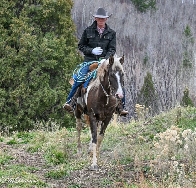 🎄𝐓𝐇𝐄 𝑯𝒐𝒍𝒊𝒅𝒂𝒚 𝐂𝐋𝐀𝐒𝐒𝐈𝐂🎄 Happening now thru MONDAY | DECEMBER 15th - Available EXCLUSIVELY on HorseBid's website! For more details and to register visit: www.Horsebid.com CONSIGNOR CONTACT: 4 Spades Ranch 208-705-6540 LOCATION: Rigby, ID BREED: Paint REGISTERED: No COLOR: Chocolate Paint HEIGHT: 14.2 AGE: 4 GENDER: Gelding Tacova is a nice, 4-year-old grade gelding standing 14.2 hands tall. He’s been used for trail riding, penning, and sorting cattle on the ranch, and he’ll ride out just as confidently alone as he does in a group. Friendly and easy to catch, Tacova has a kind eye and a willing nature. He’s started on the heel-o-matic and showing a lot of promise in the rope pen. He knows his leads, side passes, ties, loads, and stands quietly. Sound, sensible, and a pleaser — Tacova is a young gelding ready for his next adventure, whether that’s putting in miles on the ranch, heading down the trail, or finishing him your way.