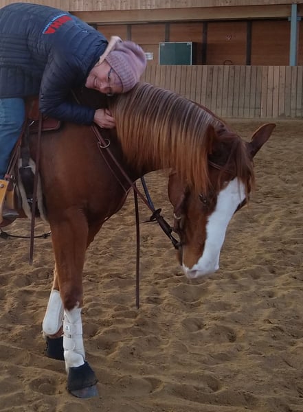 Nur wegen Bestandsverkleinerung: Sehr lieber junger Painthorse Wallach mit bestem Papier, von Smart Like Custom NRHA Non Pro Derbysieger, Mutter ebenfalls mit Showerfolgen, bestens geritten und gefördert in Ranchriding und Allaround, EWU JuPf, geht alleine ins Gelände, mit allerbestem Charakter. Gerne in ein förderndes Zuhause, passend für Jugendliche. Wegen altem Rö Befund ( Fohlenspat hinten links) unter Wert zu verkaufen, Rö Bilder von 05/25 liegen vor, im Training bei Lena Wolff Performance Horses