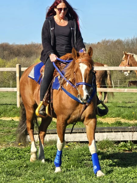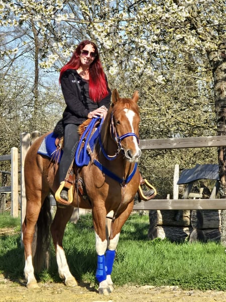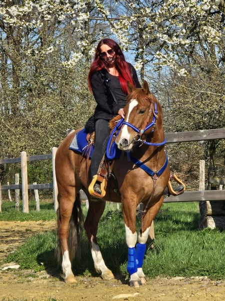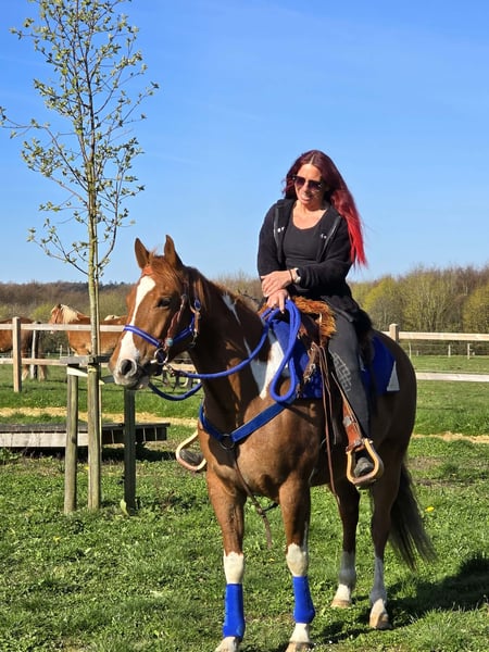 Calypso – a horse that immediately captures your heart This charming Paint cross gelding (born 2021) with striking chestnut and white coat combines charisma, character, and quality in a particularly beautiful way. With his strong, harmonious build and distinctive markings, he is a real eye-catcher. But he impresses not only visually – his friendly, open nature makes him a pleasant partner in daily handling. Calypso has been ridden and proves to be reliable, balanced, and consistently motivated. His calm nerves make him a horse that remains composed even in new situations, providing confidence to his rider. Whether alone or in a group – he is well-behaved and uncomplicated in the terrain and enjoys working together. He is accustomed to turnout in an open stable and gets along very well with it. Thanks to his versatile aptitude, many paths are open to him – whether as a reliable leisure partner, for relaxed trail rides, or for further development in various riding disciplines. Paint cross gelding, born 2021, approx. 1.55 m, with veterinary health certificate Chestnut and white Name: Calypso, 5 years old. €6,900 Ridden Reliable & balanced Trail-safe, even alone Nerve-strong Accustomed to turnout in an open stable Harmonious, strong build Versatile use A young gelding with charisma, character, and great potential – a true partner for the future. Care & Handling: – Regular deworming – Shoeing maintained – Osteopathic care Additional offers: Western saddles, bridles, and other accessories available. Service: – Transport can be arranged – 3-month exchange guarantee Test ride: – €35 (each additional horse €25) – Credited on the day of purchase Price reduction for immediate pickup or same-day transport: – Category 1: €100 – Category 2 (from €5,000): €250 Phone: 0171 – 4001968 Available daily from 8 a.m. to 8 p.m. No emails or WhatsApp messages All information without guarantee