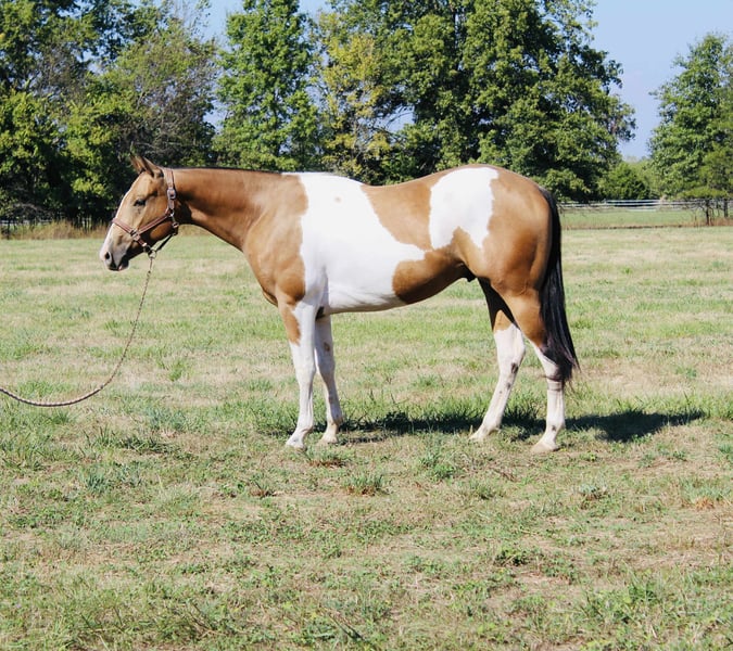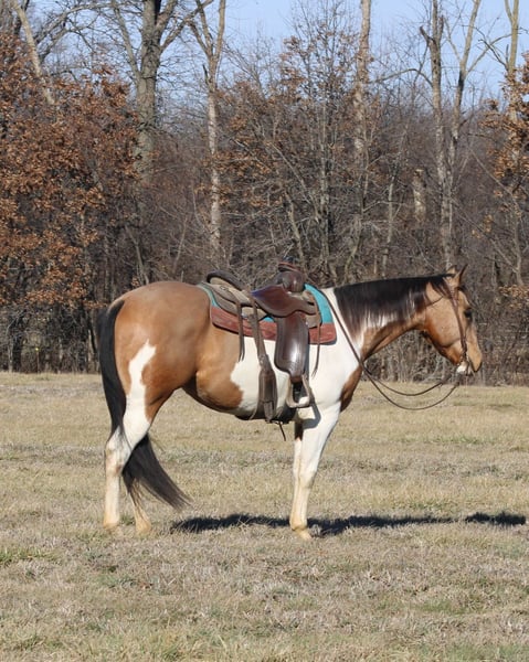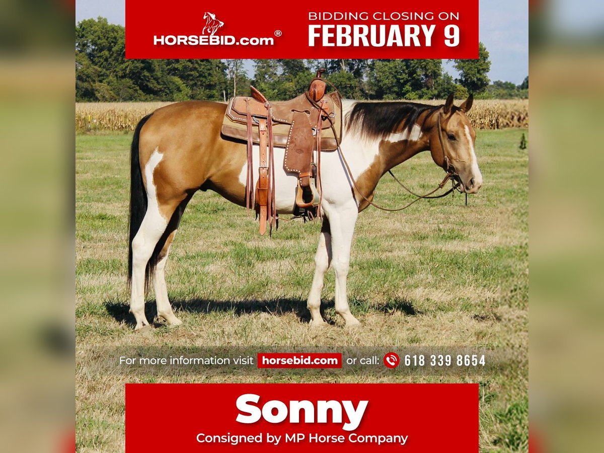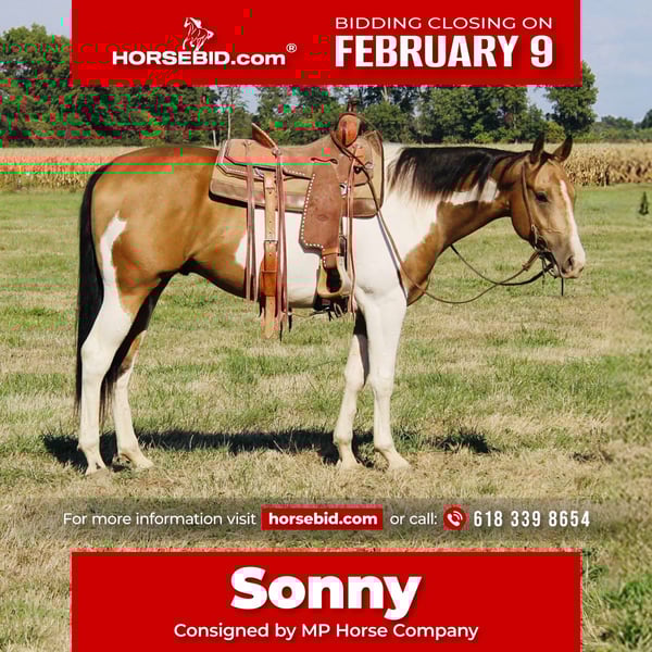 ❤️🔥𝑩𝒆 𝑴𝒊𝒏𝒆 𝐒𝐄𝐋𝐄𝐂𝐓❤️🔥 Happening now thru MONDAY | FEBRUARY 9th - Available EXCLUSIVELY on HorseBid's website! For more details and to register visit: www.Horsebid.com CONSIGNOR CONTACT: MP Horse Company 618 339 8654 LOCATION: Brownstown, IL BREED: APHA REGISTERED: Yes REGISTERED NAME: Drops of Jupiters Son COLOR: Buckskin and White HEIGHT: 15.2 AGE: 4 GENDER: Gelding Sonny – 4-Year-Old APHA Gelding – Fancy Broke & Ready to Ride! Sonny’s a 4-year-old APHA-registered gelding, Riata Buckle and Future Fortunes eligible, and as broke as they come. He spins 360s on a dime, works cattle with ease, and handles town like a pro—traffic, sidewalks, and crowds don’t faze him. He’s been on the ranch, in the arena, and out on every kind of trail, proving he’s smart, willing, and dependable. At 15.2 hands, his Tobiano white and buckskin coat turns heads, but it’s not just looks—Sonny’s got the brains, talent, and work ethic to match. He’s ready for the show pen, a busy ranch, or a confident rider who wants a horse that’s fun every ride. Picture him spinning off your leg cue, cutting cattle across the pasture, or cruising calmly down a quiet trail at sunset—he makes every ride a thrill. Sonny’s steady, smart, and built to impress. Step off the trailer and he’s ready to go. Fancy, talented, versatile, and packed with attitude—this gelding is looking for the right rider to take him anywhere and everywhere.