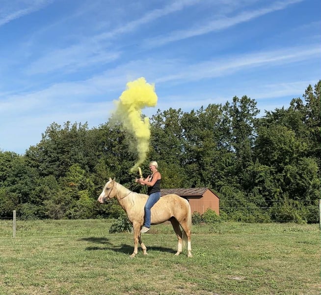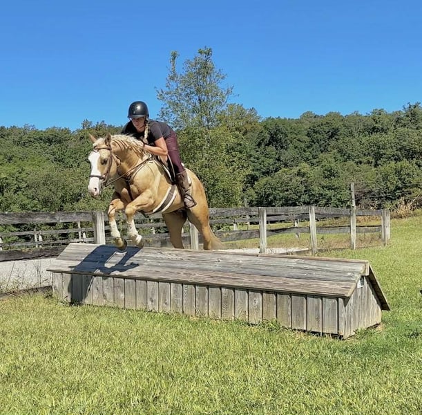 🍁𝒕𝒉𝒆 𝐅𝐀𝐋𝐋 𝑺𝒑𝒆𝒄𝒕𝒂𝒄𝒖𝒍𝒂𝒓🍁 Happening now thru MONDAY | SEPTEMBER 22nd - Available EXCLUSIVELY on HorseBid's website! For more details and to register visit: www.Horsebid.com CONSIGNOR CONTACT: Triple R Horses 610-806-2613 LOCATION: New Holland, PA BREED: APHA paint REGISTERED: Yes REGISTERED NAME: Freckled Intoxication COLOR: Palomino HEIGHT: 15 AGE: 5 GENDER: Gelding “Freckled Intoxication” aka “Malibu” is a 5yr old, 15hh, APHA gelding, with a lush mane, beautiful palomino coat, and chocolate freckles all over his body. Mali is safe, reliable, and Mr. Personality! He is an in your pocket type of dude with loads of character. Malibu can do it all, and he is ready to be your best friend! Do it all, and do it safely! In the barn, he has zero bad habits. He can live in or out, goes out with others and can live alone. He has no bad stall habits and is quiet while stalled. He stands on the cross ties to be groomed, tacked, bathed, etc. He straight ties to the trailer to get ready. Mali is a happy go lucky guy, and loves attention. He is safe with kids and dogs running around him, cows standing with him, you name it. He is totally unbothered and knows how to take a joke! He is an easy keeper with a simple diet, no maintenance and no supplements. He is good for the vet and farrier, and can wear shoes or go barefoot. He walks up to you in the pasture and is easy to catch. He likes being around people and will make you giggle with his silly personality. Malibu loves trail riding. He will lead, follow, go alone and in groups. He has a nice steady walk pace, and will trail ride on the buckle all day long. He is safe with traffic, bikes, strollers, wildlife and doesn’t mind my dogs trailing his heels. He crosses logs, rocks, water, and will wait for you at the porta potty. He would make a great camping partner or fox hunter. He even has the personality of a husband horse. He is always up for a good adventure, pack your saddle bags full of beer and go enjoy your ride. Malibu rides western, english, and bareback. He is soft in your hands and rides in a simple snaffle, or even a halter and lead rope! His gaits are comfortable and uphill. He has smooth transitions and listens nicely to your cues. He is a blast to ride, and the same horse every ride. Mali is the safe horse that your kids can go jump on in the pasture and he will take care of them. In the ring, Mali will walk, trot, canter, knows his leads, and loves to jump. He will ride collected or on the buckle. Malibu backs up nicely, pivots, side passes, neck reins, moves off of your leg, and you can ask for a big whoa, or bring him down smoothly through the gaits. He shows a lot of potential for ranch classes, low level reining fun stuff, cows, western dressage and more. He trots nicely through ground poles and is careful of where he puts his feet. He will ride off of your seat, or voice commands. Mali is forgiving and doesn’t get upset if his rider is off balance. He is just always a happy guy and enjoys every ride. Malibu enjoys jumping too! He will pop over tiny cross rails gently, or jump larger jumps and cross country fences too! He is a natural over fences and is very good with distances. He does not get hot or forward while jumping. You’ll see how honest he is in the clips of my pup jumping the cross country jumps with us. Malibu is a beautiful mover, and could go dabble in low level dressage, eventing, or maybe you just want a horse that will take care of you while you work on yourself! No matter what direction you want to take him in, he is happy to do it, or go have fun and do IT ALL!!!!! Malibu is registered with APHA. He is sired by “Intoxication” who is a beautiful stallion who has points in halter and western pleasure, who goes back to “Mighty Awesome”, a stallion who was known for his championship breeding and impact on APHA. On Mali’s bottom side, back in his lines you will see “Sonny Dee Bar”, a famous stallion who is a leading sire of show horses, known for producing great dispositions and natural talent. He was inducted into the AQHA Hall Of Fame in 2003. Malibu’s breeding speaks for itself, and has created an amazing all around boy. No matter what you are looking to do, Malibu is ready to be your forever partner and do it with you. I have really enjoyed my time with this boy. He is currently set up to head in absolutely any direction. Not to mention, he is easy on the eyes! If Malibu sounds like a good match for you, please don’t hesitate to reach out for further information!!! Shipping can be arranged anywhere.