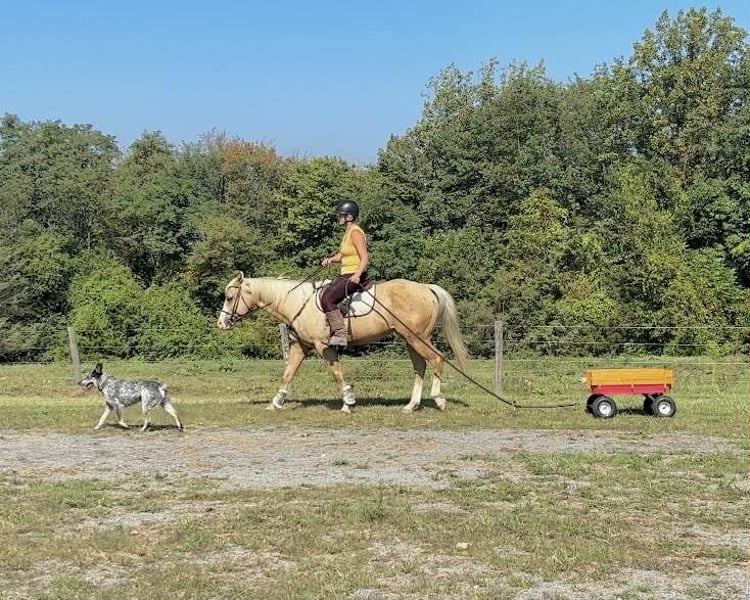 🍁LE SPECTACLE DE L'AUTOMNE🍁 Se déroule dès maintenant jusqu'à LUNDI 22 SEPTEMBRE — Disponible EXCLUSIVEMENT sur le site d’HorseBid ! Pour plus de détails et pour vous inscrire, rendez-vous sur : www.Horsebid.com CONTACT DU VENDEUR : Triple R Horses 610-806-2613 LIEU : New Holland, PA RACE : APHA paint ENREGISTRÉ : Oui NOM ENREGISTRÉ : Freckled Intoxication COULEUR : Palomino TAILLE : 15 mains ÂGE : 5 ans SEXE : Gelding « Freckled Intoxication », alias « Malibu », est un hongre de 5 ans, mesurant 15 mains, avec une crinière abondante, un magnifique pelage palomino, et des taches chocolat partout sur le corps. Mali est sûr, fiable, et doté d’une grande personnalité ! Il est du genre à venir se coller, avec beaucoup de caractère. Malibu peut tout faire, et il est prêt à devenir votre meilleur ami ! Faites tout, en toute sécurité ! Dans le box, il n’a aucun mauvais comportement. Il peut vivre en permanence à l’intérieur ou à l’extérieur, sortir avec d’autres chevaux ou vivre seul. Il n’a pas de mauvaises habitudes en box, reste calme quand il est en stalle, et se tient sur les longues rênes pour être toiletté, bridé, lavé, etc. Il se laisse attacher à la remorque pour se préparer. Mali est un cheval heureux, qui adore l’attention. Il est sûr avec les enfants et les chiens qui courent autour de lui, avec des vaches qui restent à côté, peu importe. Il ne se laisse pas perturber et sait prendre une blague. Facile à gérer, il a une alimentation simple, sans entretien ni suppléments. Il est facile pour le vétérinaire et le maréchal-ferrant, peut porter des fers ou rester pieds nus. Il vient à votre rencontre dans le pâturage et se laisse facilement attraper. Il aime être proche des gens et vous fera sourire avec sa personnalité rigolote. Malibu adore faire des randonnées en extérieur. Il peut mener, suivre, partir seul ou en groupe. Il a un rythme de marche régulier et peut faire des balades toute la journée au pas. Il est sûr avec la circulation, les vélos, les poussettes, la faune sauvage, et ne dérange pas ses chiens qui traînent derrière lui. Il franchit troncs, rochers, ruisseaux, et attend à la porte des toilettes. Il ferait un excellent compagnon de camping ou de chasse à courre. Il a même la personnalité d’un cheval de mariages. Toujours partant pour une aventure, préparez votre sac de selle avec des bières et partez profiter de votre balade. Malibu monte en selle western, anglaise et sans selle. Il est doux dans la main et se monte en mors simple, ou même en halter avec une longe ! Ses allures sont confortables et montées en terrain en montée. Il fait des transitions fluides et répond bien à vos aides. C’est un plaisir à monter, et il reste le même cheval à chaque sortie. Mali est un cheval sûr, que vos enfants peuvent monter dans le pâturage, et il prendra soin d’eux. En dressage, Mali marche, trotte, galoppe, connaît ses aides et aime sauter. Il peut être monté en dressage classique ou en tout-venant. Il recule proprement, pivote, fait des épaules en dedans, des côtés, et répond au reining. Il se déplace en longeant la jambe, et peut demander un arrêt net ou ralentir en douceur. Il a beaucoup de potentiel pour le travail en ranch, le reining débutant, la conduite de vaches, la dressage western, et plus encore. Il trotte bien sur des barres au sol, en faisant attention à ses pieds. Il se monte à l’aide de la selle ou de la voix. Forgiving, il ne se fâche pas si son cavalier perd l’équilibre. Toujours heureux, il apprécie chaque sortie. Malibu adore aussi sauter ! Il peut franchir doucement de petits obstacles ou sauter de plus grands barres et des fences de cross-country. Il est naturellement doué en saut, avec une excellente gestion des distances. Il ne devient pas chaud ou trop en avant en sautant. Vous verrez à quel point il est honnête dans les vidéos où mon chien saute avec nous. Malibu a une belle allure, et pourrait s’essayer à la dressage de niveau débutant, à l’équitation d’événement ou simplement être un cheval qui prend soin de vous pendant que vous progressez ! Peu importe la direction que vous souhaitez lui donner, il est prêt à devenir votre partenaire pour toujours et à faire tout cela avec vous. J’ai vraiment apprécié mon temps avec ce cheval. Il est actuellement préparé pour toutes les disciplines. Et en plus, il est agréable à regarder ! Si Malibu vous semble correspondre, n’hésitez pas à me contacter pour plus d’informations ! La livraison peut être organisée partout.