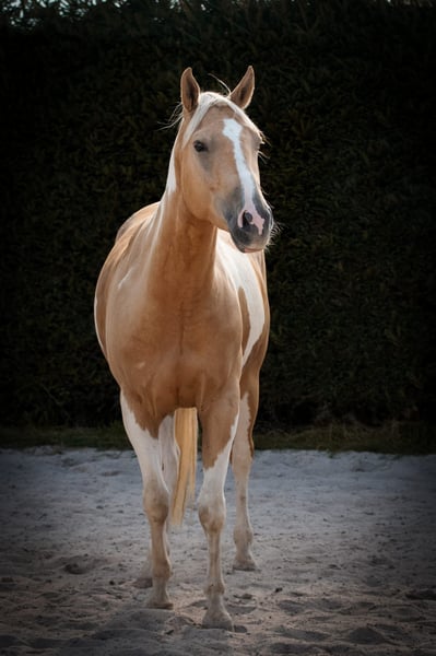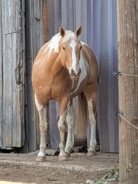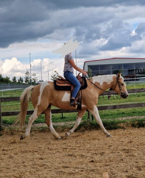 *Paint Horse Gelding for Leisure Riding* Born: February 20, 2020 Height: 15.6 hh Color: Palomino Tobiano Sire: Magic on Ice Dam: Holly didit Cuba has been ridden for approximately two years, with occasional breaks in between. He has been consistently exercised for nearly a year, mainly in the terrain, and now also rides alone. However, he does not particularly enjoy riding in the arena, at least not in a dressage context. Therefore, he is best suited for passionate trail riders. He is familiar with lunging, double-lunging, ground driving, pole work, groundwork, and more. He is very calm and rather laid-back in nature—definitely a horse without a lot of go. Still, he is sensitive, very strong-willed, and values fair treatment, so more experienced or routinized horsepeople may find it easier to handle him in certain situations. That said, responsible beginners can also enjoy working with him and will grow together with him thanks to his generally calm demeanor. In his youth, he suffered a hind limb injury at the stifle, which has fully healed and does not impair him, although it is visible. Therefore, he is not suitable for sport. Additionally, he cannot be transported without a reliable second horse. For the sale, transportation should preferably be arranged via truck or similar. All arrangements are possible in consultation. He can be ridden and, due to his young age, will not be sold as a companion horse only. A paddock or stable with plenty of turnout during the day would be ideal. He is familiar with both keeping systems. Price: €5,500 negotiable. Price is open to discussion. Location: 87634