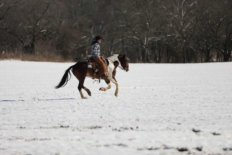 ONLINE AUCTION Place your bids at www.PlatinumEquineAuction.com Starting Bid $3500 Auction ends January 26th, 2025 Need a new saddle? Check out White Rock Saddles on our website or Facebook! Blaze is a good looking, fancy broke, 5 year old, bay tobiano, super stout built, draftcross gelding that aims to please. This is one that is a barn favorite to anyone who comes by whether it’s taking him for a swim or just feeding him treats in the pasture Blaze is sure to win you over. He stands right at 15.2hh and is spotted as good as yu can paint one! Blaze has been used for just about everything you could imagine doing on horseback. We have caught cattle, drug calves, snubbed colts, given roping lessons, done the obstacles and so much more. He is the definition of an all around gelding with a heart of gold. Blaze has been ridden hundreds of miles on a feeder calf operation and has been trail ridden in multiple states. He stands to be saddled, mounted and bathed. He’s one of the farriers favorite horses to shoe and will be one of your favorites to ride. He rides calm, quiet and safe with an attitude that’s always looking to please. He is located in Santa Fe, TN. Anyone is welcome to come see him in person or we can facetime call and see him in live-time. For more info contact J & S Equine JT 931-698-7159. ONLINE AUCTION Place your bids at www.PlatinumEquineAuction.com Starting Bid $3500 Auction ends January 26th, 2025 Need a new saddle? Check out White Rock Saddles on our website or Facebook!
