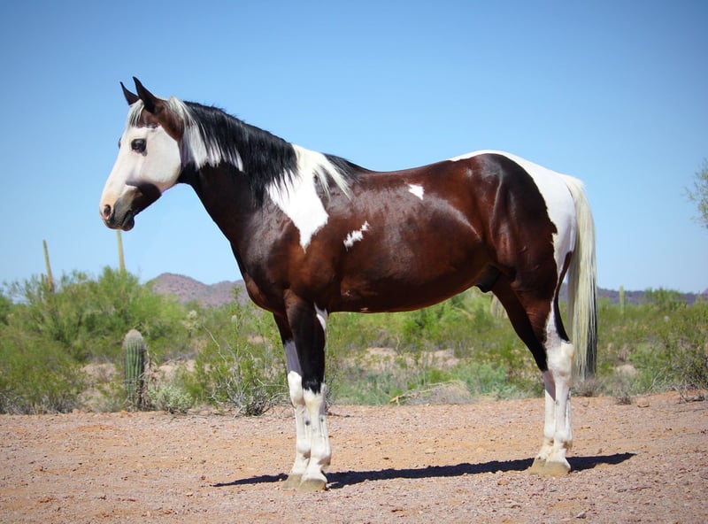 ♦️ 𝐭𝐡𝐞 𝐀𝐌𝐄𝐑𝐈𝐂𝐀𝐍 𝓕𝓪𝓵𝓵 𝓒𝓵𝓪𝓼𝓼𝓲𝓬 ♦️ Happening now thru MONDAY | OCTOBER 20th - Available EXCLUSIVELY on HorseBid's website! For more details and to register visit: www.Horsebid.com CONSIGNOR CONTACT: 11/11 Equine 435-899-0508 LOCATION: Marana, AZ BREED: Paint REGISTERED: No COLOR: Paint HEIGHT: 14.2 AGE: 6 GENDER: Gelding You’ll never find another horse like Jester! This 6 year old grade paint gelding is as unique and pretty as they come with an unusual bald face and two blue eyes. He stands a stout 14.2 hands tall and turns heads everywhere he goes. Jester is the type of horse that wants to be your best friend. He will run over to the gate when he sees you coming with a halter, loves scratches and cuddles, and wants to be in your pocket. He is gentle and kind, and fun to ride. Jester has been started roping the dummy on the heel side and is showing lots of promise there. He would also make a fantastic breakaway prospect. He has a smooth, rhythmic lope, comfortable trot, and walks quietly on a loose rein. He is responsive and has a motor when asked for it, but will only go the speed asked of him. Jester is not a spooky guy and he has done all the trail course obstacles with ease as well. He is willing and brave enough to go over and through anything you ask him to! He not only rides nicely, but he has wonderful ground manners too. He stands tied quietly, tacks up quietly, and self loads into the trailer even! Jester requires no maintenance, is currently shod on all four and is good for the farrier and vet. He will come with a current coggins and health certificate, and I am happy to help arrange hauling anywhere as well! Please feel free to call/text Claire at 435-899-0508 with any questions at all!