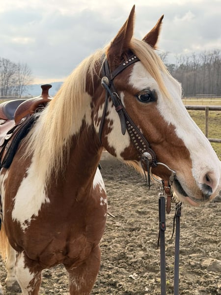 Offered for sale is a 6-year-old American Paint Horse gelding, sorrel overo, standing approx. 158 cm (15.2 hh). This gelding is a well-trained western horse with an excellent mind, making him an ideal partner for less experienced riders, families, or anyone looking for a safe, uncomplicated and trustworthy horse. 🔹 Training & Use Correctly and calmly western ridden. Suitable for: ✔️ Ranch Riding ✔️ Horsemanship ✔️ Trail riding ✔️ Leisure / pleasure riding He is forgiving, easy to ride and reliable, not spooky and comfortable to handle in different environments. A horse that helps the rider build confidence and enjoy riding. A safe and reliable horse suitable for less experienced riders is becoming increasingly hard to find. 🔹 Character & Handling Calm, kind and people-oriented Honest and willing to work Easy in daily handling (leading, grooming, tacking) Suitable as a family horse A very pleasant horse to live with. 🔹 Health ✔️ Clinically sound ✔️ No known or hidden issues ✔️ IAK negative ✔️ Regularly trimmed and well maintained No special maintenance required. 🔹 Pedigree Registered with the American Paint Horse Association (APHA). Pedigree includes solid western / foundation-type bloodlines, known for good temperament, rideability and versatility. Registration papers available. 🚚 Transport Transport can be arranged. 📍 Located in Slovenia (EU) 📩 Please contact for further information, photos and riding videos.