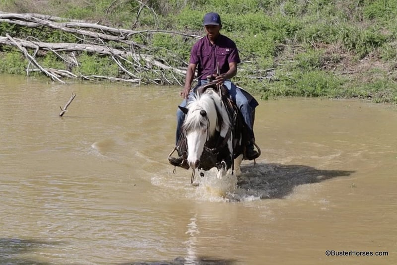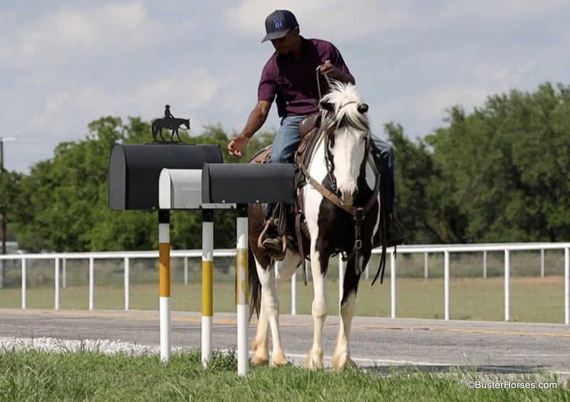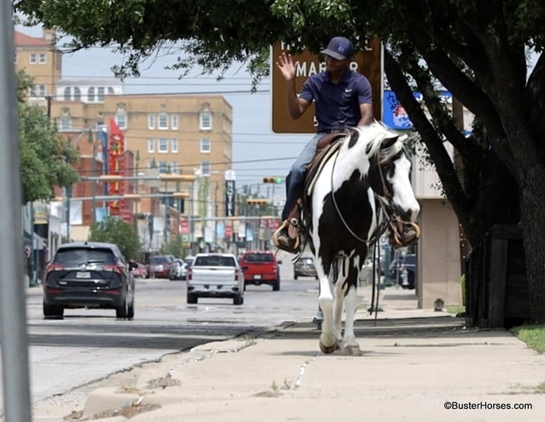 ONLINE AUCTION Place your bids at www.PlatinumEquineAuction.com Starting Bid $3500 Auction ends May 25th, 2025 Need a new saddle? Check out White Rock Saddles on our website or Facebook! If you are looking for a flashy, fun, no-nonsense, sweet, just point-and-go have a good time trail riding companion… then Tonto is your man!!! He is at the perfect age at only 7 years old, he has already been around and seen lots of things, been hauled, been on lots of rides, been in lots of parades … but he is only 7 and still has his whole lifetime in front of him! This sweet little gelding is great-natured, kind, and so extremely simple and uncomplicated to ride. He is as smooth as they come and suitable for just about any level of rider. If you are sitting on him, you feel extremely secure. He is so naturally smooth moving in all of his gaits, that you would have to practically just pick up and bail off of the side of him to be able to come off of this one!!! He is naturally low-headed and will travel on a relaxed rein and neck rein around – but, you can also pick him up and ride with a lot of contact, and he will tolerate just about anything with new rider’s bumbling around being all over on him, in his face, and in his mouth. He has an adorable personality and loves to be around people. He drops his head for the halter or the bridle to be put on, and will stand there relaxed and patient if you have to fumble around and get organized. He could care less about other horses and never knickers or calls back to the barn, super good about leaving the barn and going out alone. He hauls like a perfect gentleman. If you often ride out alone, then this is the one for you. He is great anywhere in the group and has a huge big ground covering almost running walk to him if you push him and ask for it. He is a unique cross that could ride with the regular horses and also keep up with the gaited horses! He loves the water and does not hesitate to cross the creek or go into the pond, he is sure-footed and handles up and down terrain, creek beds, banks, Rocky areas, and thick wooded trees. He pays attention and navigates where he is going. He is great to catch, bridle, saddle, groom, bathe quiet for the vet and the farrier, and just an all-around gentleman! Everybody here adores this sweet horse, he will be with his next partner for a long time! Please do not hesitate to give us a call if you have any questions about him! Ashely at Buster Horses 214-605-7174 Tonto is shod all the way around and is ready to hit any trails that you put in front of him, his feet were just reset last week. Prior to being shod, he was barefoot for quite a while, he has really great feet, and could easily go barefoot again if you were just riding around your place locally. His teeth were just done by our equine dentist last month, and he also had his sheath cleaned, his ears preemptively treated for ticks, and was dewormed at that time. He will arrive to his new owner up to date on everything and ready to go. He is in great shape and in good health. Watch his video, and to see additional videos, go to our website: BusterHorses.com or our Facebook page: Buster Horses Tonto is located in Weatherford, TX – one hour from Dallas / Fort Worth International Airport. He is an easy day trip, or fun overnight trip to come and try out, from anywhere! We are experienced, knowledgeable sellers, and we can help with quickly arranging affordable shipping to any buyer’s location – we have experience shipping worldwide – including regularly to Hawaii, Canada, Mexico, Europe, and South Africa. Check our website for buyer reviews, more videos of Tonto, additional info, etc: BusterHorses.com/Tonto-Paint-Gelding ONLINE AUCTION Place your bids at www.PlatinumEquineAuction.com Starting Bid $3500 Auction ends May 25th, 2025 Need a new saddle? Check out White Rock Saddles on our website or Facebook!