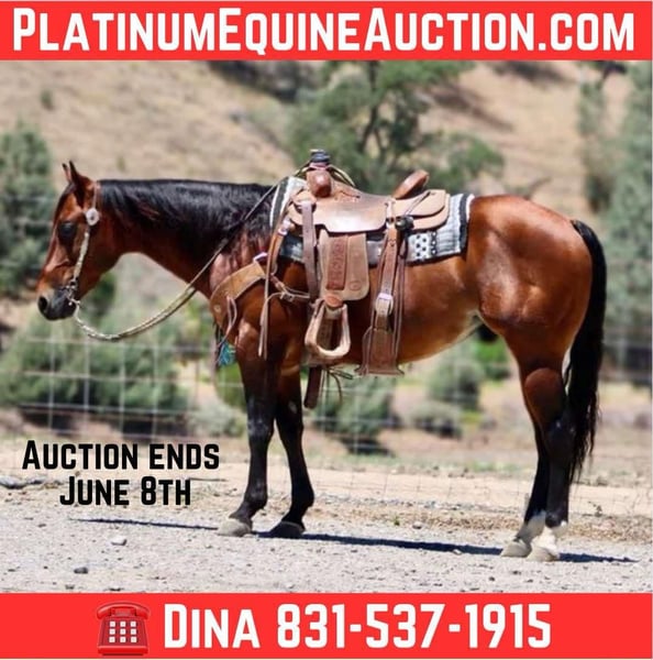 ONLINE AUCTION Place your bids at www.PlatinumEquineAuction.com Starting Bid $3500 Auction ends June 8th, 2025 Need a new saddle? Check out White Rock Saddles on our website or Facebook! Meet Compadre Mentiras the horse that’s more than just a ride – he’s your next partner! This stunning 2017 AQHA gelding stands at 14.3 hands, boasting bloodlines from Colonel Freckles and Smart Little Lena, guaranteeing versatility and brains. Compadre isn’t just well-bred; he’s got the personality to match. His gentle nature makes every ride a joy, with smooth gaits and effortless responsiveness to leg cues. Fancy a spin? He’s got impressive circles and turnarounds that’ll make you smile. Beginner or experienced rider, Compadre is your perfect match. He’s been a confidence-builder for first-timers and a reliable trail buddy for seasoned pros. Speaking of trails, nothing fazes him – trees, brush, water, he handles it all with ease. Ranch work? Compadre’s your man. He’s experienced in branding, sorting, and gathering cattle, making him an invaluable asset for any ranch, big or small. But wait, there’s more! Compadre is showing real promise as a rope horse, with the speed and cow sense to excel in competitions or daily ranch tasks. Team pinning? Obstacle courses? Ranch trail riding? He’s done it all, tackling bridges, tires, and even pool noodles with enthusiasm! He’s even graced ranch rodeos and grand entries, proving his adaptability time and again. He has been ridden down busy streets and will calmly walk past cars,pedestrians, motorcycles like its second nature to this saint of horse. Handling Compadre is a breeze. He’s a dream on the trails, whether solo or with friends, and remains calm and collected in any situation. He loads and ties like a pro and cooperates with the farrier. Sure, he might be a bit bossy at feeding time, but otherwise, he’s easy to catch, clip, and bathe. Compadre is more than just a horse; he’s a willing partner ready for anything you throw his way. Don’t miss this rare opportunity to own a horse of this quality! Contact Longhorn Ranch Dina at 831-537-1915 in Paicines, CA, and make Compadre yours today! ONLINE AUCTION Place your bids at www.PlatinumEquineAuction.com Starting Bid $3500 Auction ends June 8th, 2025 Need a new saddle? Check out White Rock Saddles on our website or Facebook!