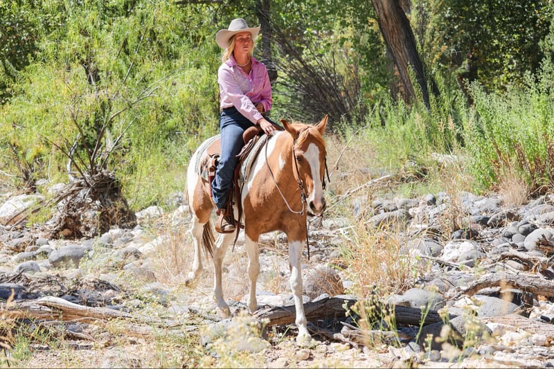 ONLINE AUCTION Place your bids at www.PlatinumEquineAuction.com Starting Bid $3500 Auction ends November 17th, 2024 Need a new saddle? Check out White Rock Saddles on our website or Facebook! Dicey is a 7 year old grade paint gelding standing 15hh. This gelding is an absolute blast to ride to matter what job you give him! Take a stroll through town, meander on down the trail, go do a solid days work around the ranch, or turn some steers in the roping pen! You name it and Dicey will do it! We have done absolutely everything you can do around a ranch on this magnificent gelding and have had all levels of riders on his back. Not only is Dicey unbothered and handy outside, he’s also a pleasure to ride in the arena! He will walk, trot, and lope both ways and has a nice smooth gait. Great neck rein, good stop, and an absolute blast to rope on! Dicey is not only handy, but an absolute joy to be around. Easy to catch, good to groom, saddle, bathe and shoe! If you’re looking for a magnificent all around gelding, Dicey is your man! Transport can easily be arranged anywhere in the US! Located in Camp Verde, AZ Contact D/C Equine Services Dallas 804-322-2233. ONLINE AUCTION Place your bids at www.PlatinumEquineAuction.com Starting Bid $3500 Auction ends November 17th, 2024 Need a new saddle? Check out White Rock Saddles on our website or Facebook!