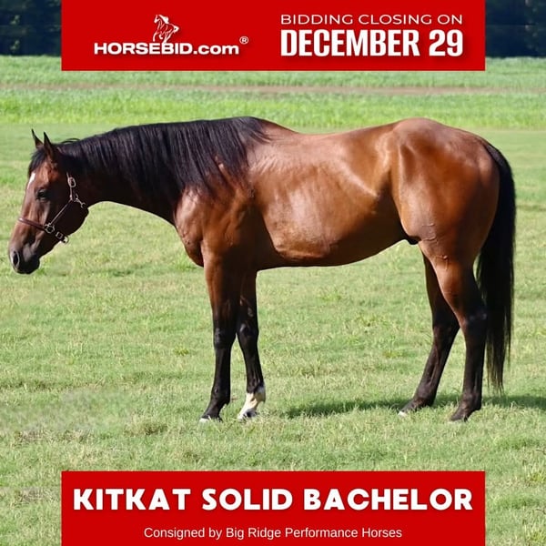 ⚜️ 𝓗𝓮𝓻𝓲𝓽𝓪𝓰𝓮 𝐖𝐢𝐧𝐭𝐞𝐫 𝓒𝓵𝓪𝓼𝓼𝓲𝓬⚜️ Happening now thru MONDAY | DECEMBER 29th - Available EXCLUSIVELY on HorseBid's website! For more details and to register visit: www.Horsebid.com CONSIGNOR CONTACT: Big Ridge Performance Horses 662-891-7454 LOCATION: Baldwyn, MS BREED: Solid Paint Horse/ AQHA eligible REGISTERED: Yes REGISTERED NAME: KITKAT SOLID BACHELOR COLOR: Bay HEIGHT: 16.3 AGE: 8 GENDER: Gelding “Waylon” is an 8 year old solid APHA gelding (He is able to be AQHA registered as well we just have not sent it off). He is strong and built to tackle any task you set in front of him standing 16.3 hands tall and weighing in at 1400 pounds! Waylon is easy to get along with and enjoyable to ride. He moves off of leg pressure, neck reins, rides nicely both in and out of the arena and can be ridden both western and english. Ride him everyday or give him a month off and he will ride off the same every time. Waylon will cross water, ride through brush, step over logs, cross ditches, and handles chaos around him with composure and willingness. He is truly the definition of a gentle giant and would sit in your lap for pets if given the chance! Waylon can be turned out in a pasture or kept in a stall. He is the first one at the gate, easy to handle, and gets along with other horses. Waylon has been shown in Western Trail, Ranch Riding, Showmanship, Halter, and Hunter Under Saddle. He has pushed cattle in open fields, started roping the sled and given lessons to beginner riders. Waylon has no bad habits or vices, stands for the farrier, baths, and tacking, and will load in and out of the trailer by himself. He is sound and UTD on vaccines. Waylon is truly a gem and our loss is your gain! If we had the room to keep him he would be here forever! His top priority is taking care of whoever is on his back and we love him for it! Waylon is the perfect combination of young, gentle, well-trained, and easy that is hard to find these days! A pre-purchase is available upon request at potential buyers expense and will include hauling fees. Please contact us with any questions regarding Waylon. Located in Baldwyn, MS Covered arena to come try him at Contact 662-891-7454