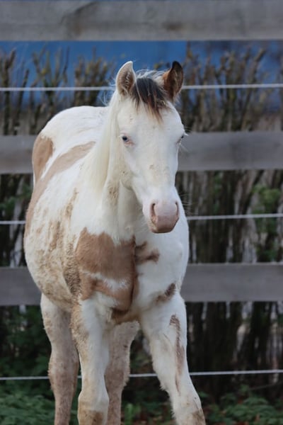 FHB CHIC WIMPYS GUN Étalon APHA, couleur dunskin Splash et Tobiano Né le : 07/03/2025 Taille finale d'environ 150 cm