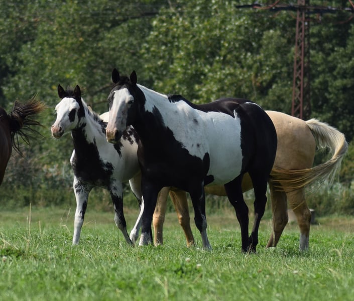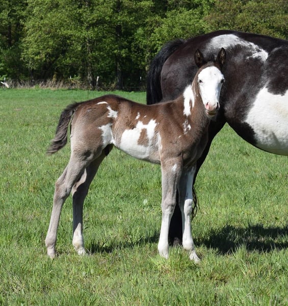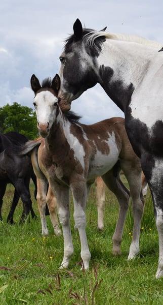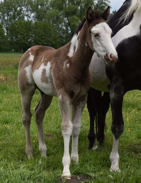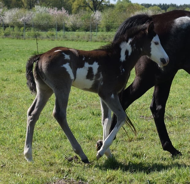 Huslers Happy Golucky x Nic In Blue born 16.04.2025 Black Overo colt As every year, we are looking for a home for our wonderful offspring this year as well. Our foals live in a species-appropriate herd environment on large pastures. They are cuddled daily and learn the foal ABC step by step. At 6 months, they can move to their new home or stay with us for further raising. Upon moving out, all horses will have a DQHA or PHCG equine passport and the CoR. If you have any questions about the individual foals, feel free to ask. You are also warmly invited to meet them in person.
