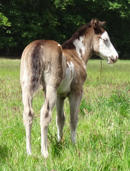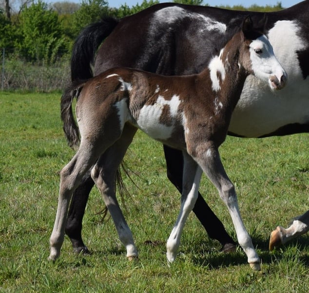 Huslers Happy Golucky x Nic In Blue geb. 16.04.2025 Black Overo Hengstfohlen wie jedes Jahr suchen wir auch dieses Jahr wieder ein Zu Hause für unsere wundervolle Nachzucht. Unsere Fohlen leben artgerecht im Herdenverband auf großen Flächen. Sie werden täglich gekuschelt und lernen Schritt für Schritt das Fohlen ABC. Mit 6 Monaten dürfen sie dann in ihr neues Zu Hause ziehen oder noch bei uns zur Aufzucht bleiben. Bei Auszug haben alle Pferde einen DQHA o. PHCG Equidenpass und das CoR. Wenn ihr Fragen zu den einzelnen Fohlen habt fragt gern. Ihr seid auch herzlich eingeladen sie persönlich kennen zu lernen.