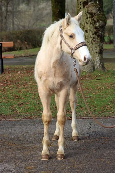 SKY GOLD BUENO Palomino APHA Hengst Geboren: 19.05.2025 Endgrösse ca 150 cm 5 panel n/n